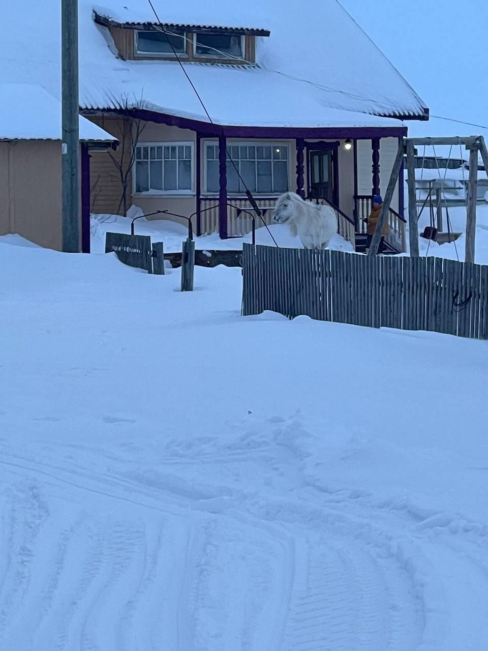 Конь Миша искал еду у людей в Заполярье и получил ветпомощь
