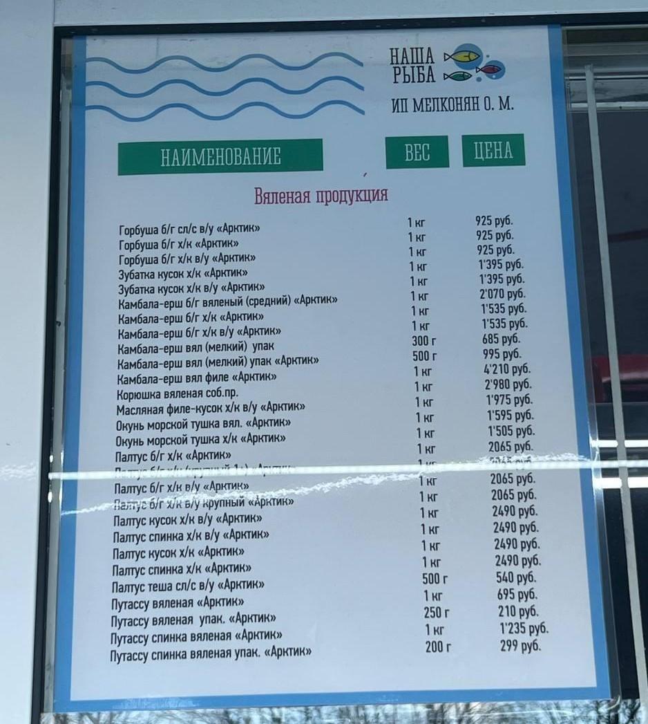 Горбуша на ярмарке стоит от 925 до 1395 рублей за килограмм, зубатка — около 1395 рублей за килограмм. Цена на камбалу-ерш начинается от 685 рублей за 300 грамм и доходит до 4210 рублей за килограмм вяленого филе.