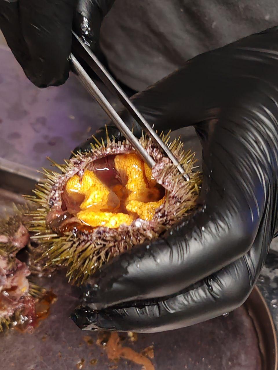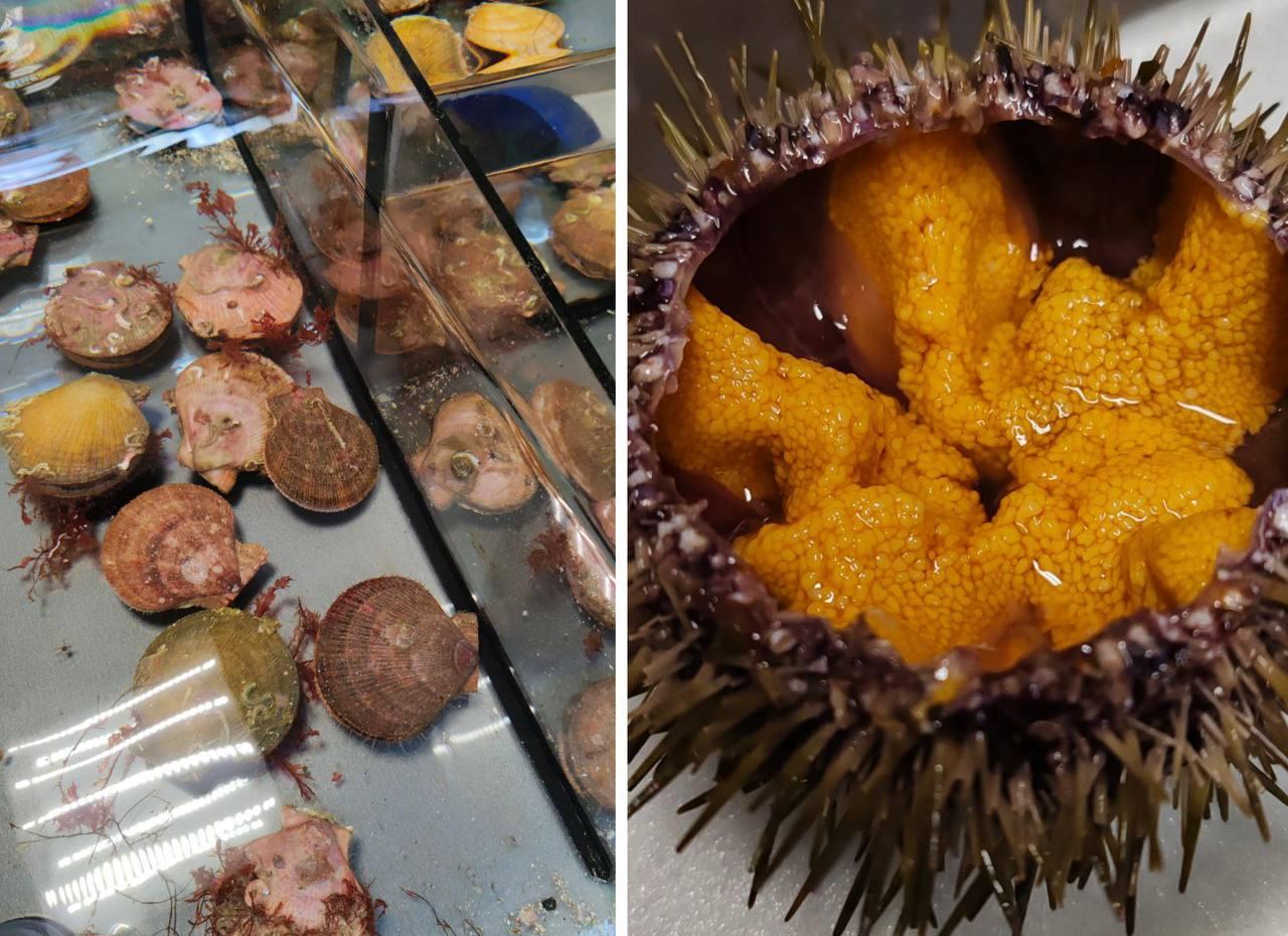 Мурманск славится свежими морепродуктами из Баренцева моря, включая гребешков и морских ежей.