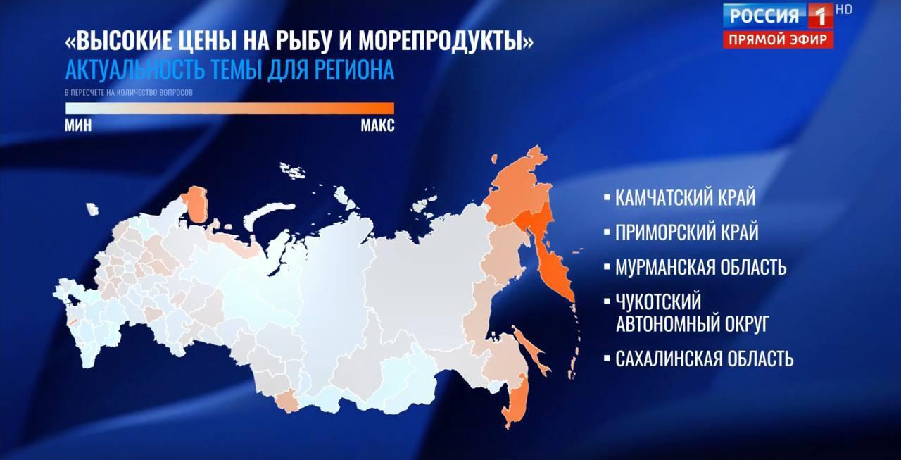 В ходе общения с россиянами Владимиру Путину задали вопрос о возможности государственного регулирования цен на рыбную продукцию и их доступности для населения.