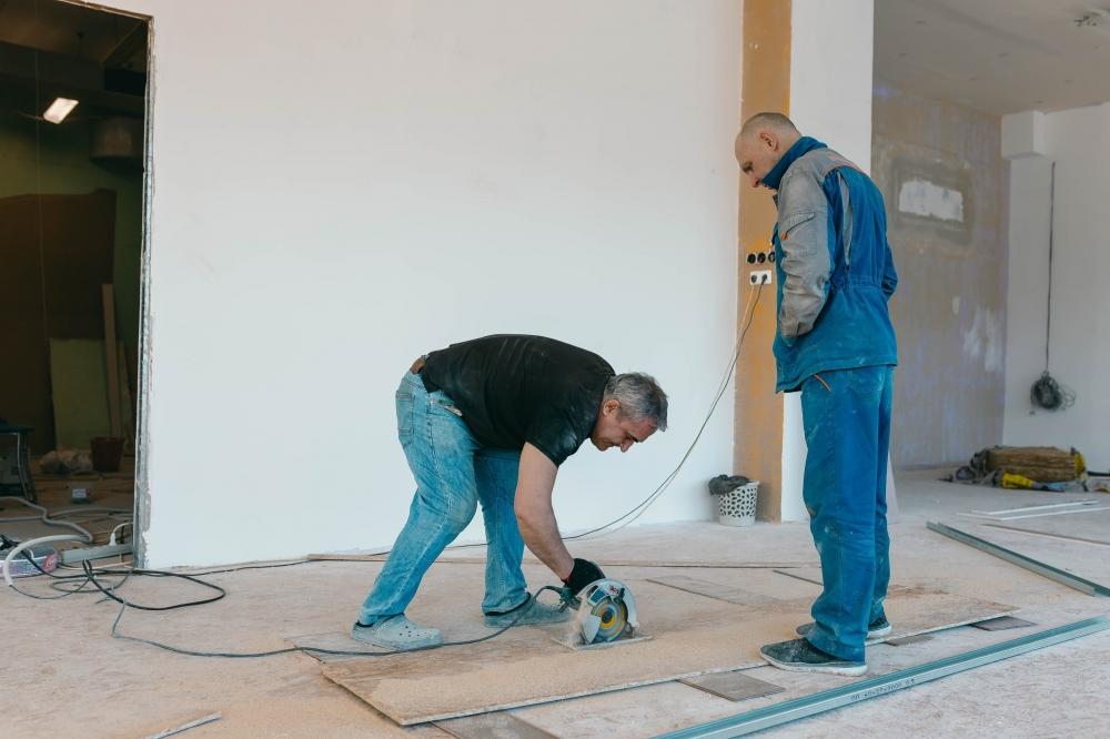 На проспекте Кольский, 93 в Мурманске идет реконструкция Центральной городской библиотеки. Рабочие преобразуют ее в современную творческую площадку, меняя планировку, выравнивая и штукатуря стены, а также обновляя электропроводку.