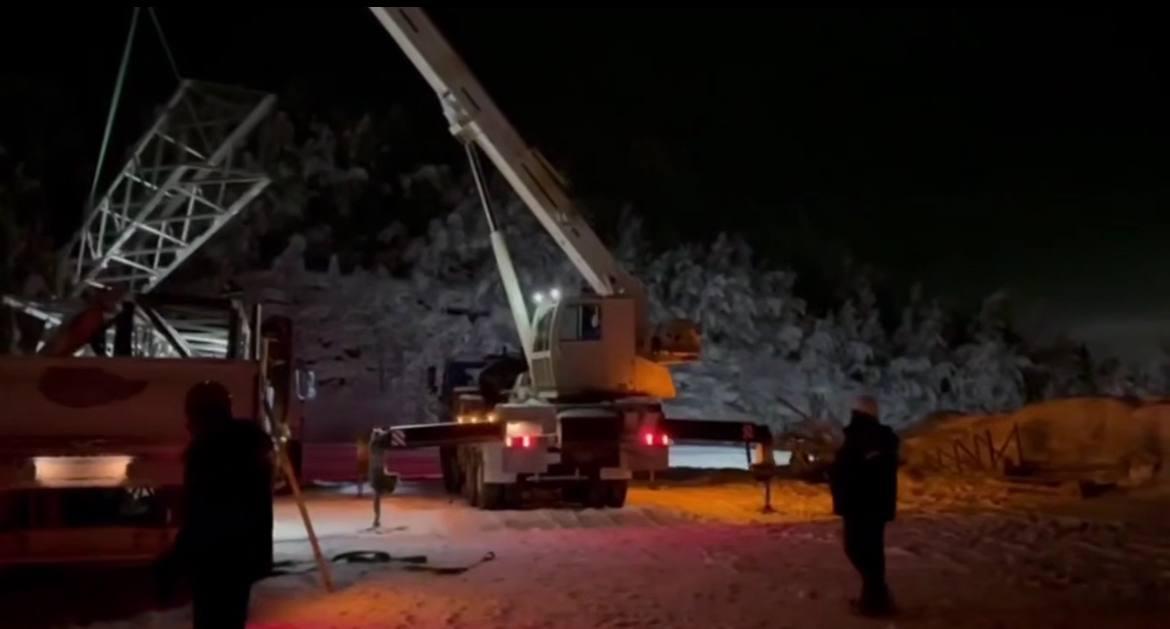 На место аварии уже привезли две основные металлические опоры, и специалисты приступили к их сборке. Еще три опоры следуют к объекту и будут доставлены к утру.