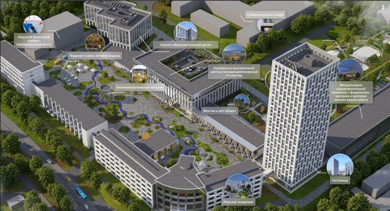 Проект представлен как стратегически значимый для научного и образовательного развития Арктической зоны. Согласно концепции, рядом со зданием Морской академии планируется строительство высотной гостиницы-общежития для студентов.