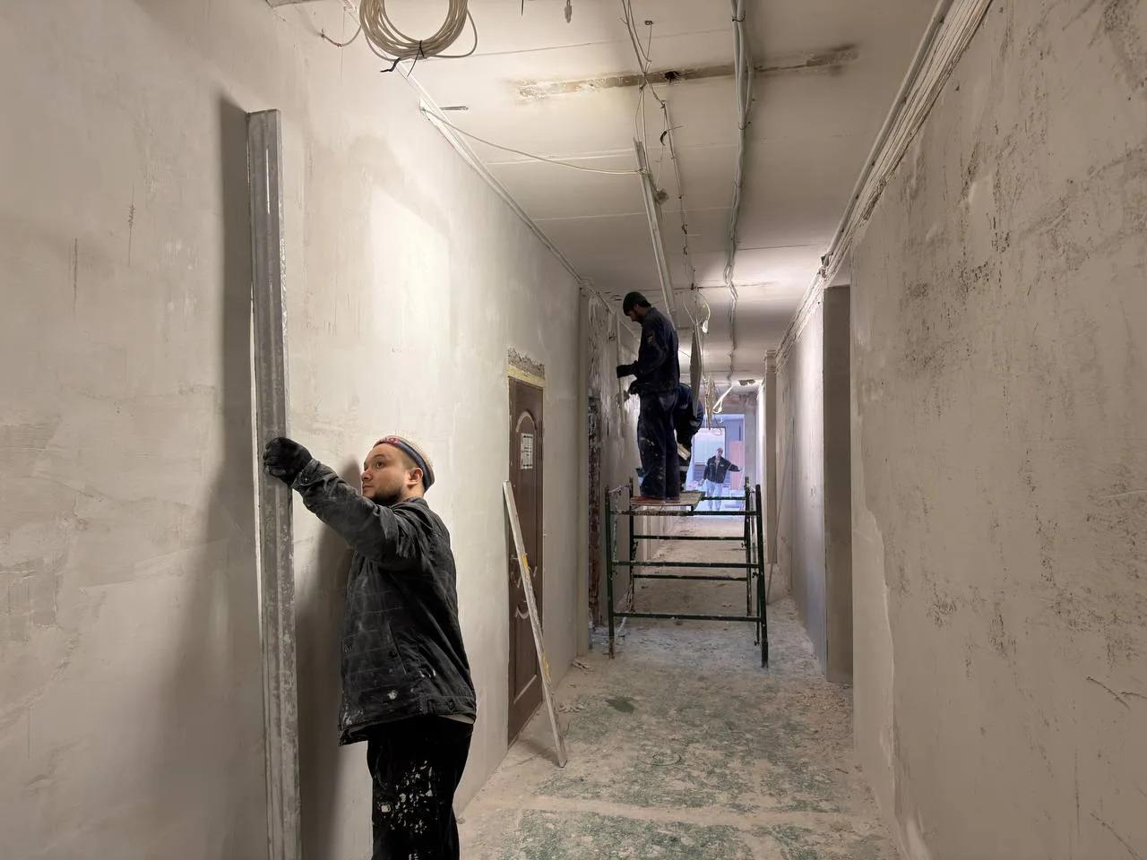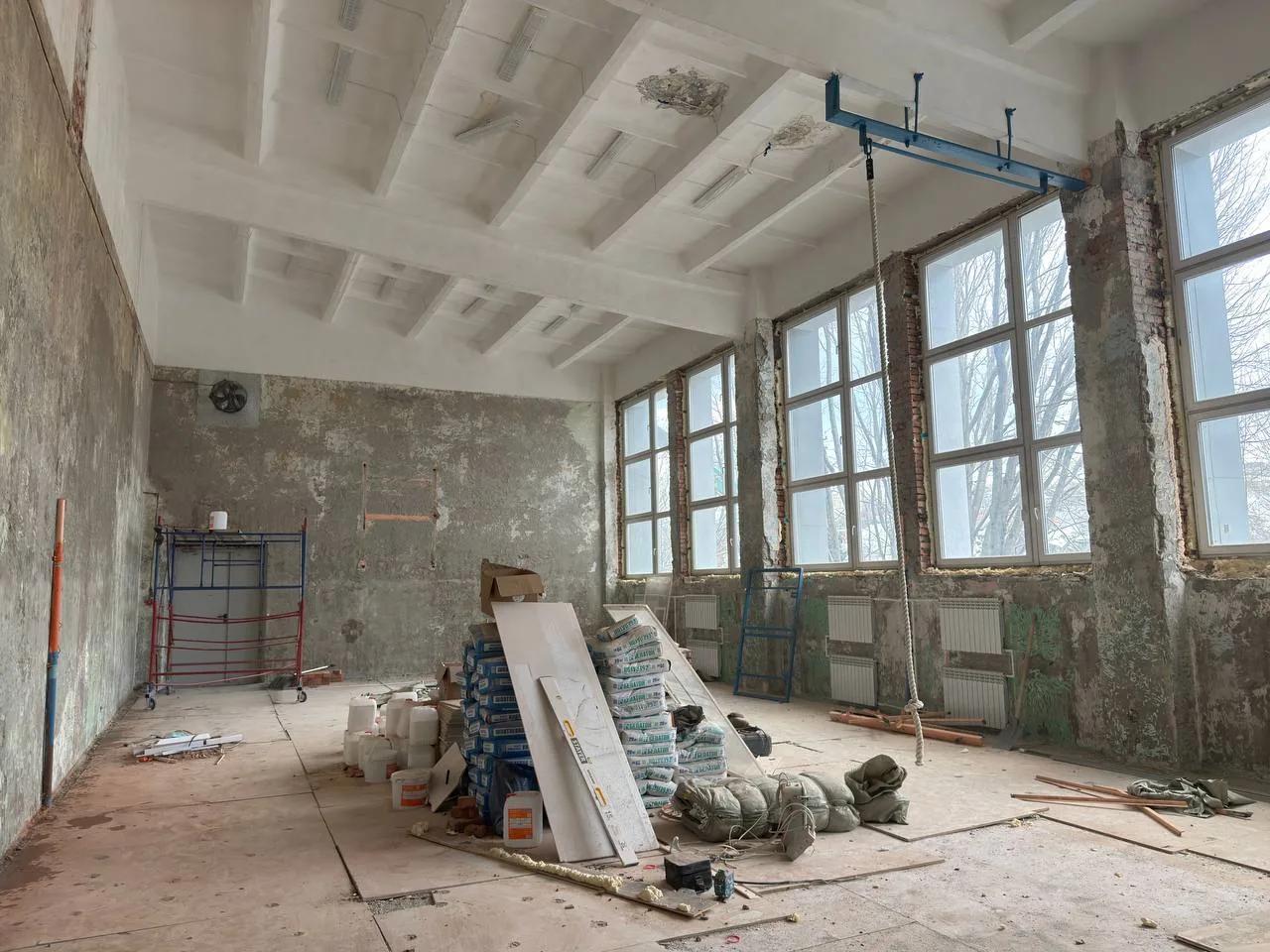 Завершить все работы планируется до старта нового учебного года. В настоящее время подрядчики демонтируют старую отделку и приступают к черновым отделочным работам.