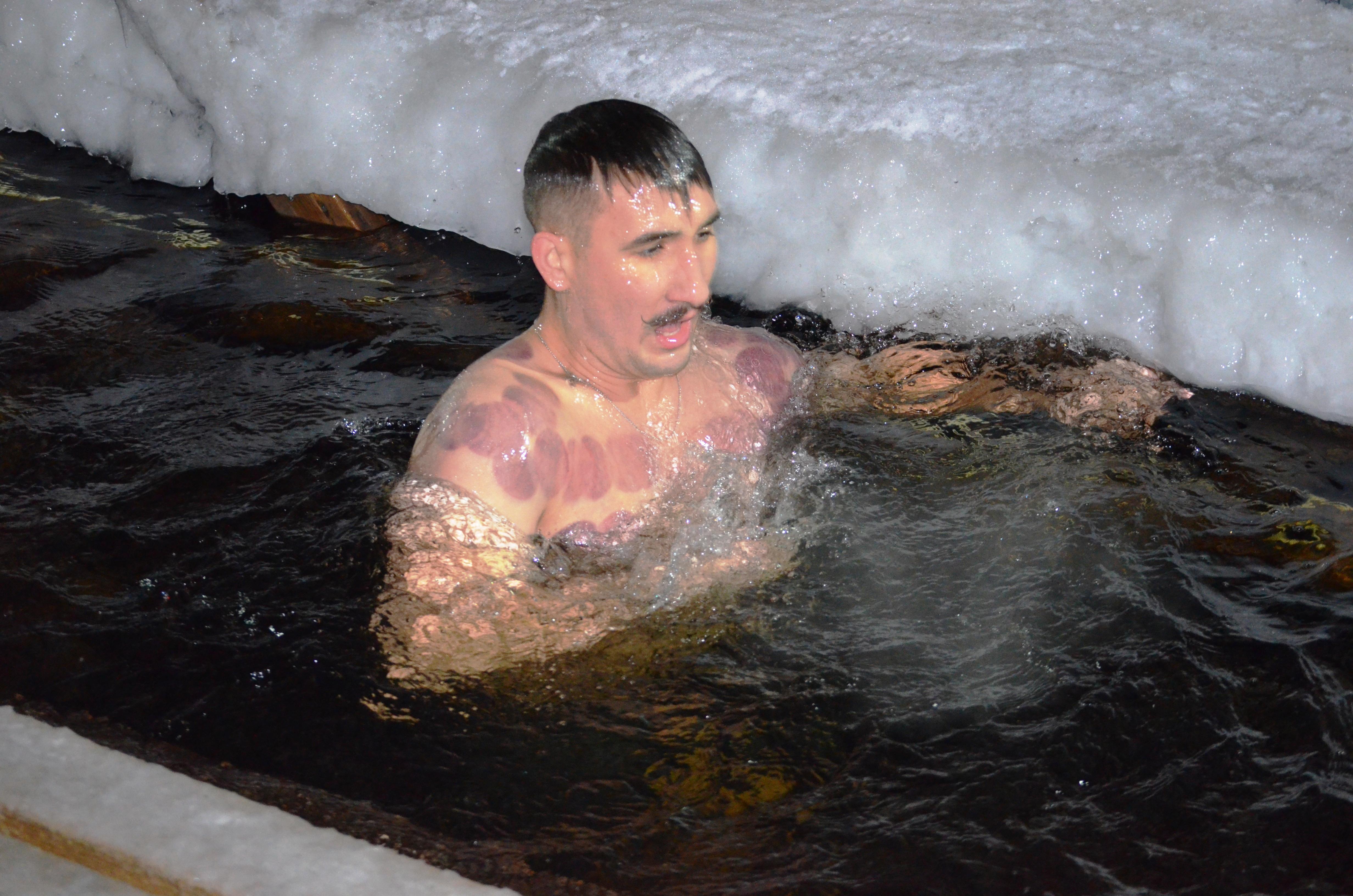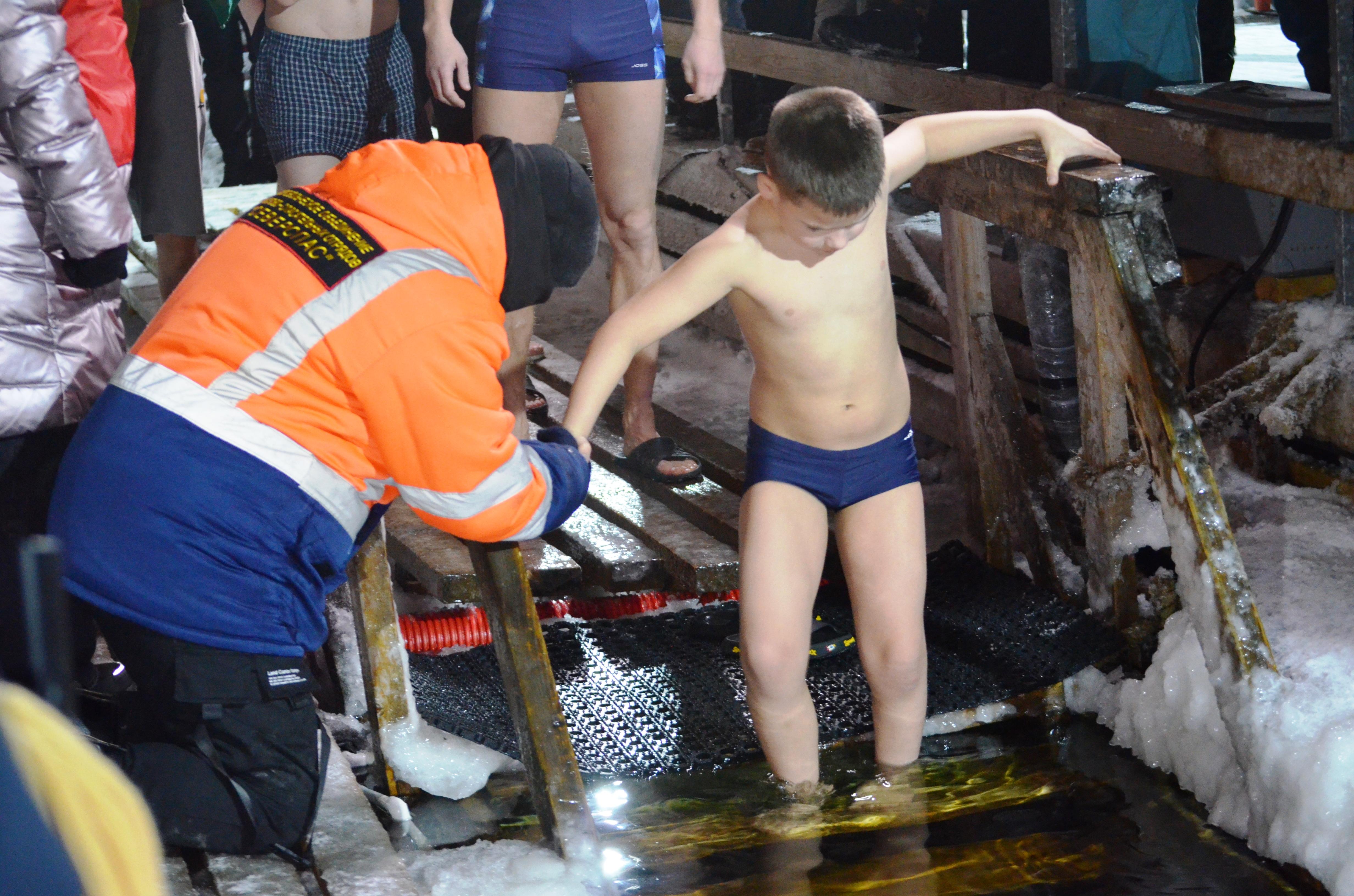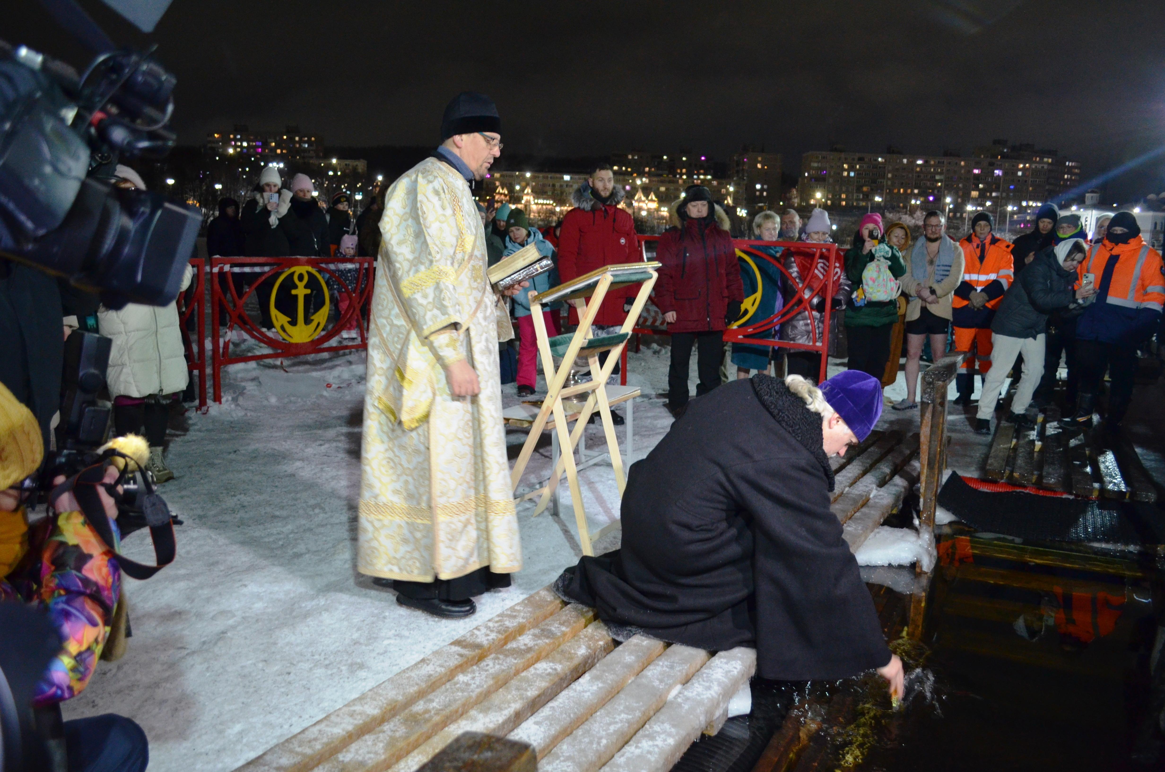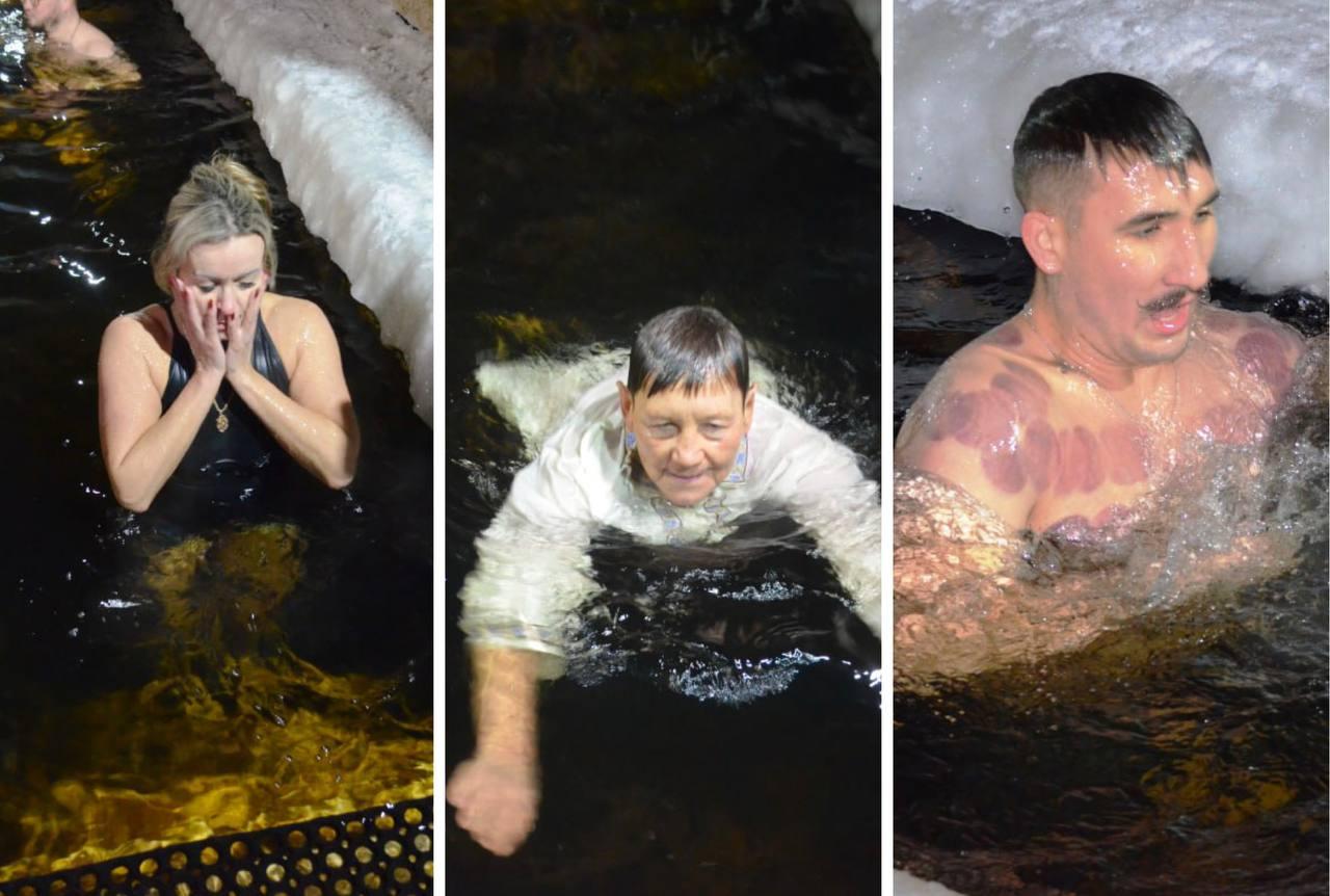 Десятки мурманчан, включая детей, окунулись в ледяную воду Семёновского озера в честь Крещения.