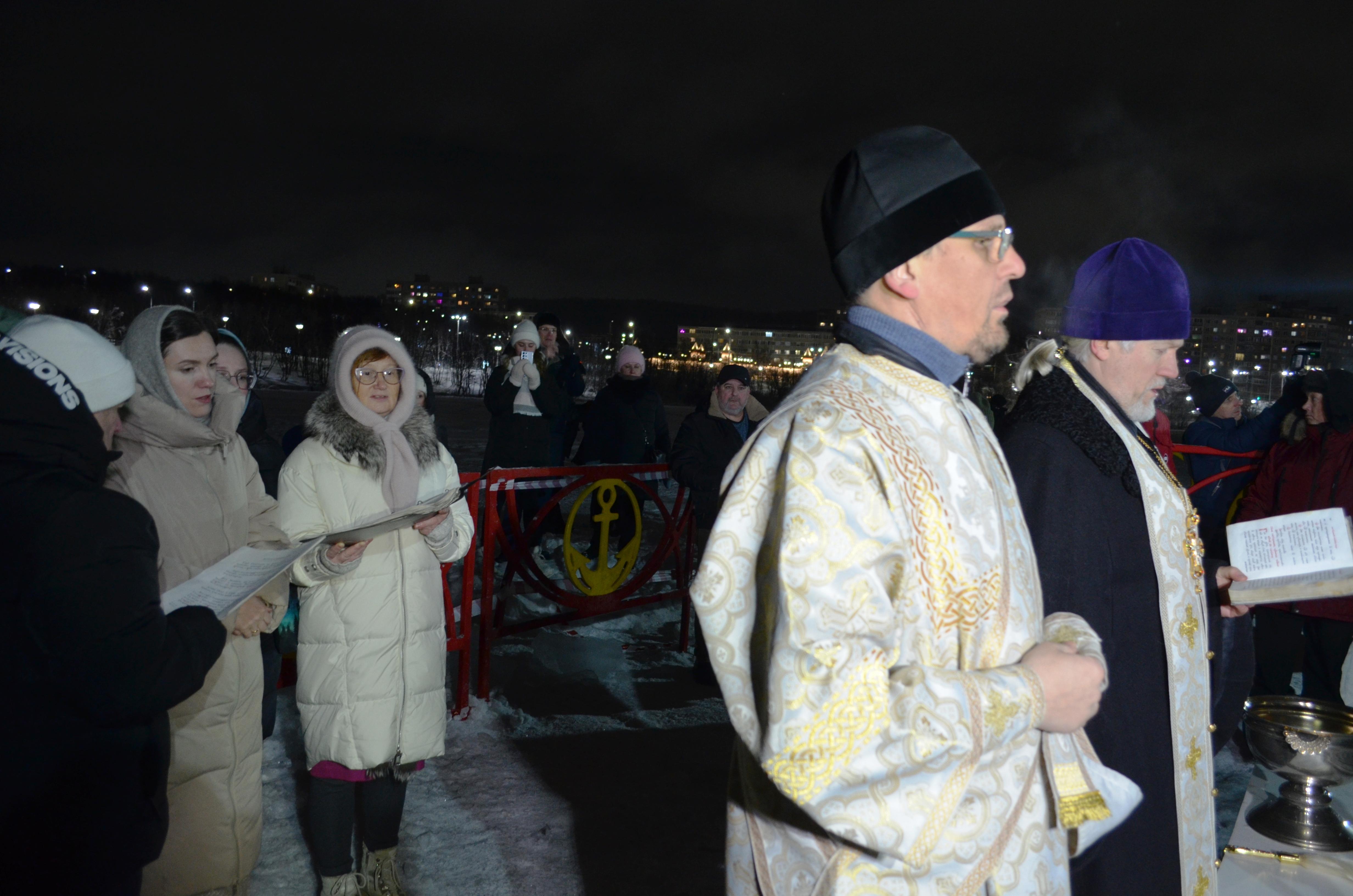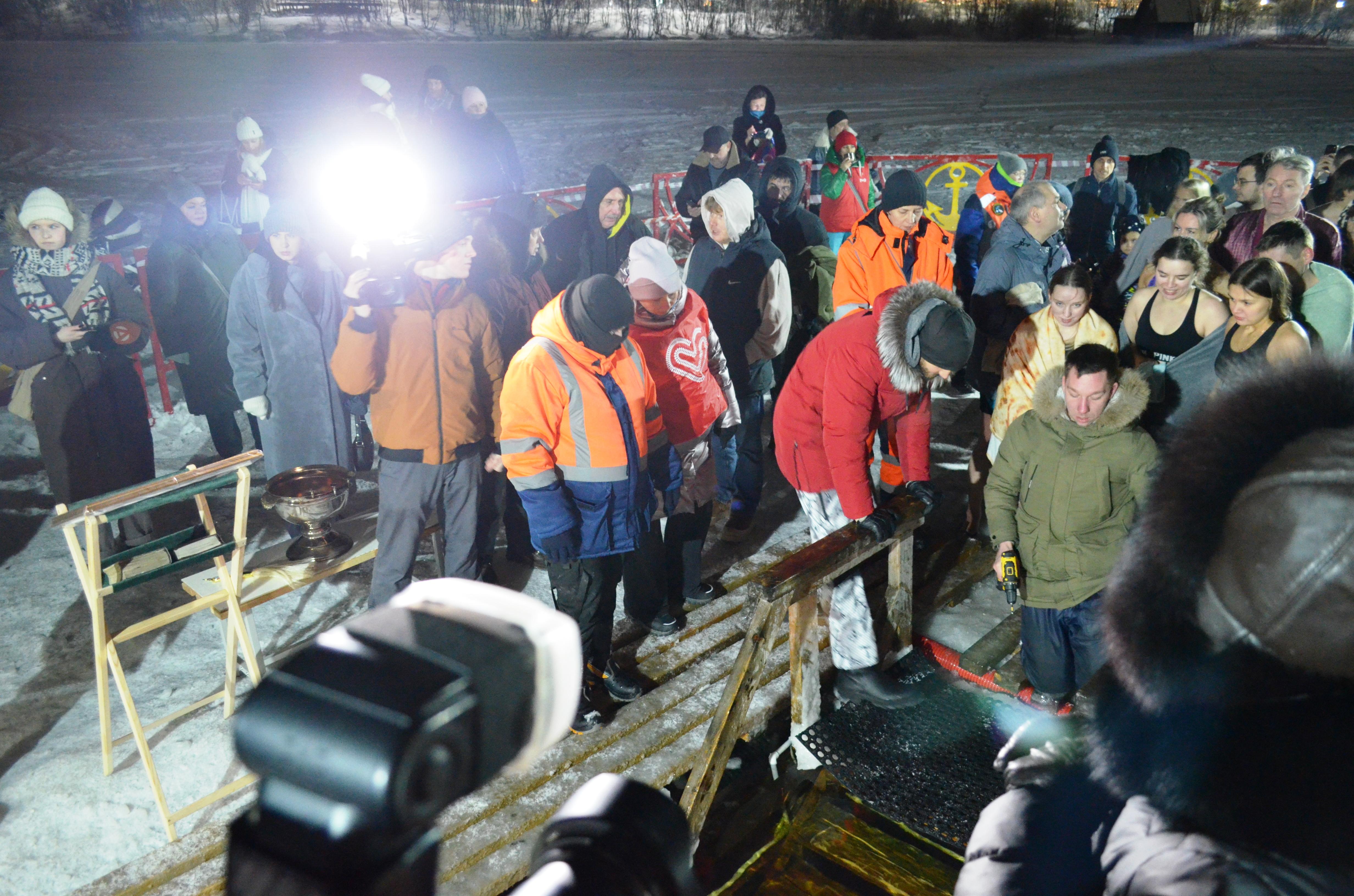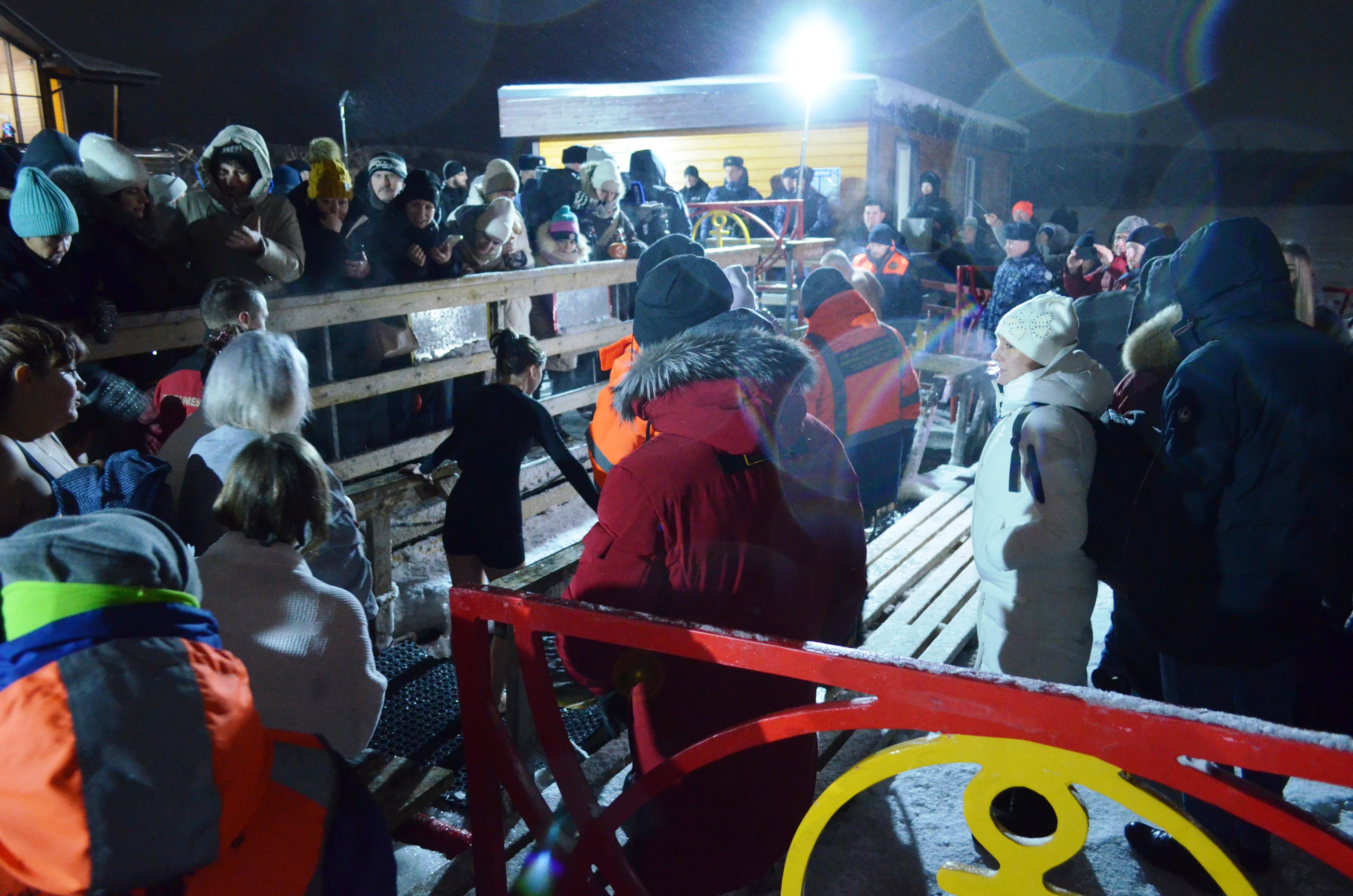 Десятки людей собрались на Семёновском озере в Мурманске для крещенских купаний.