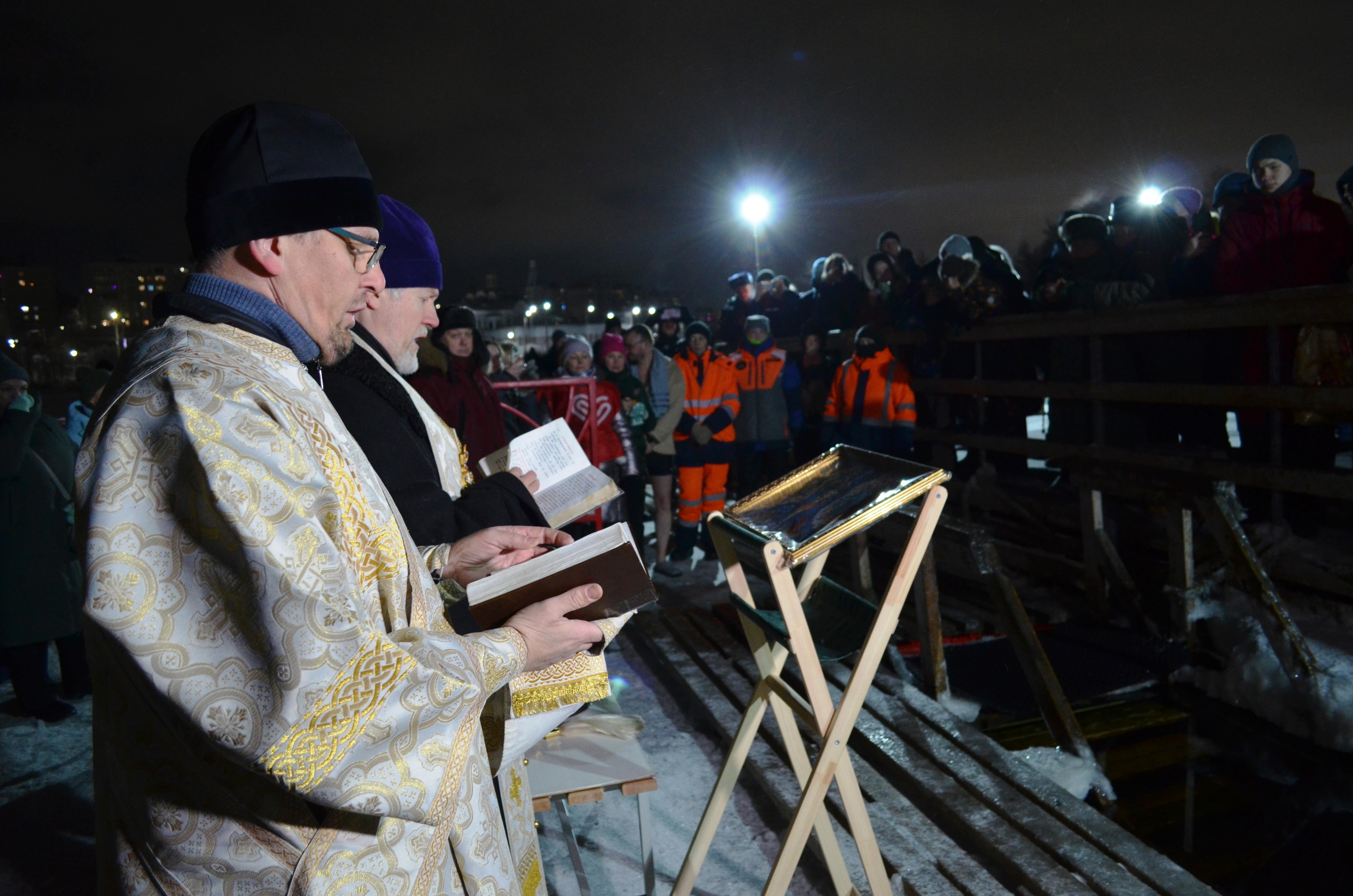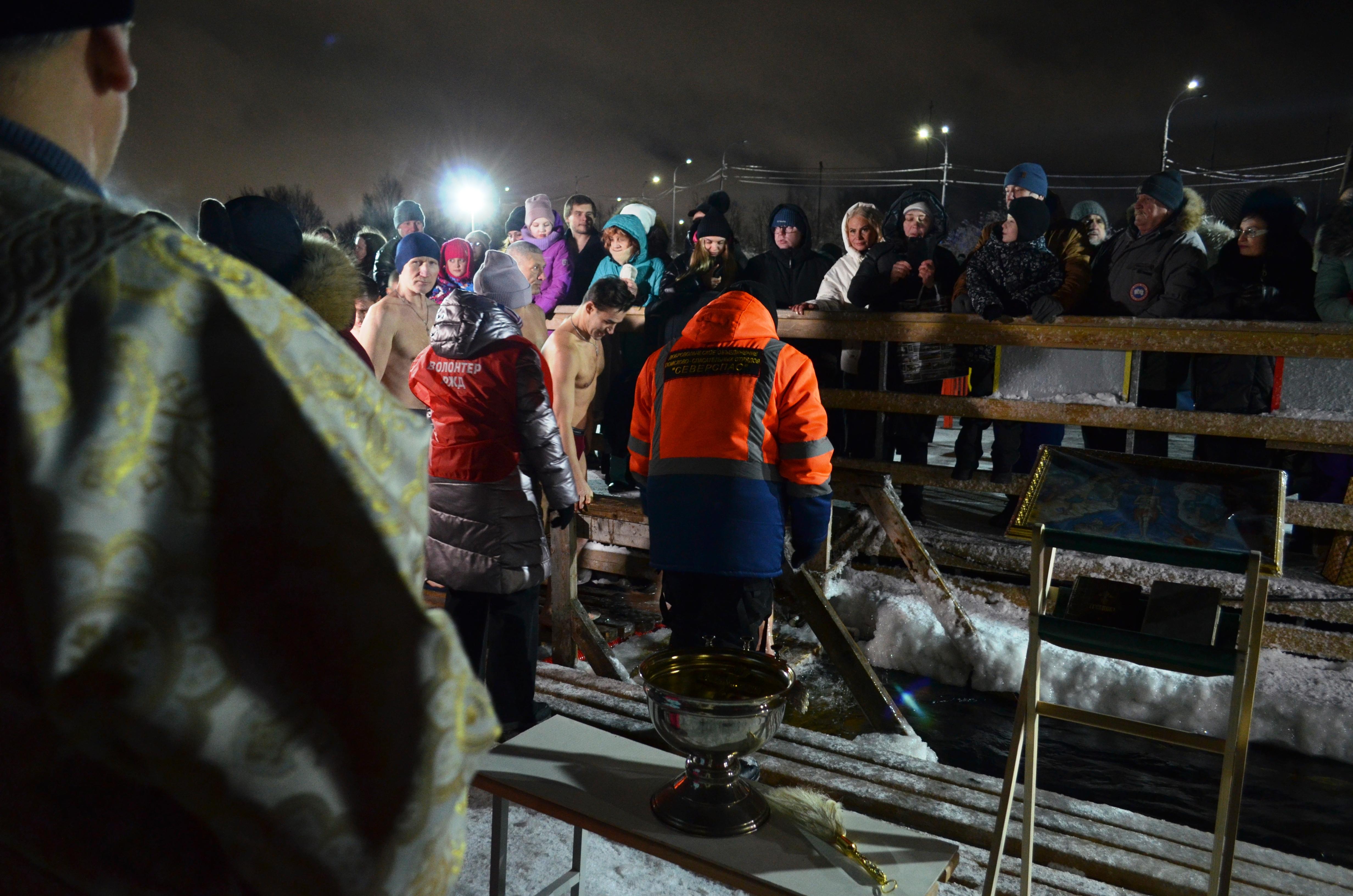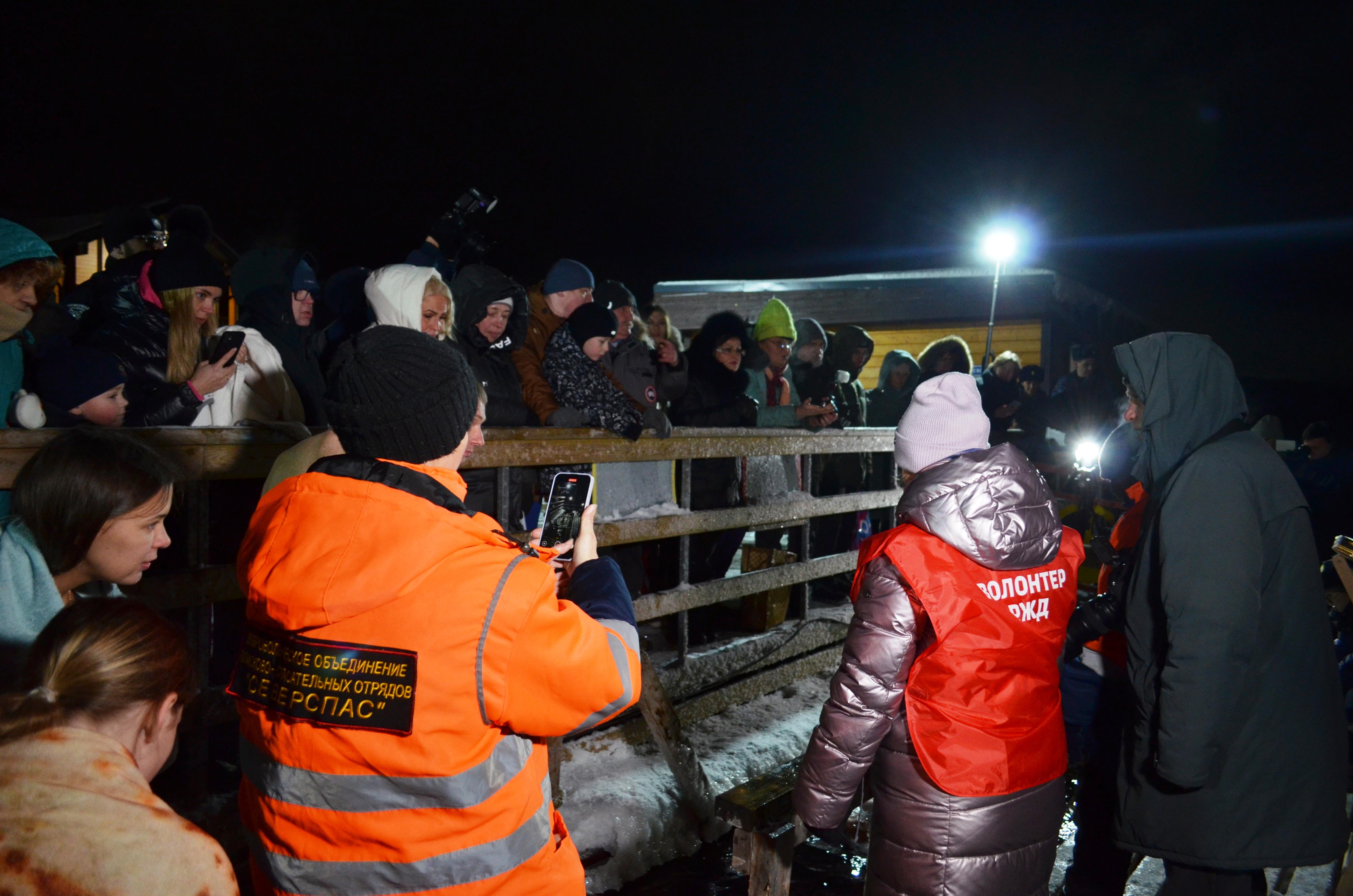 Десятки людей собрались на Семёновском озере в Мурманске для крещенских купаний.