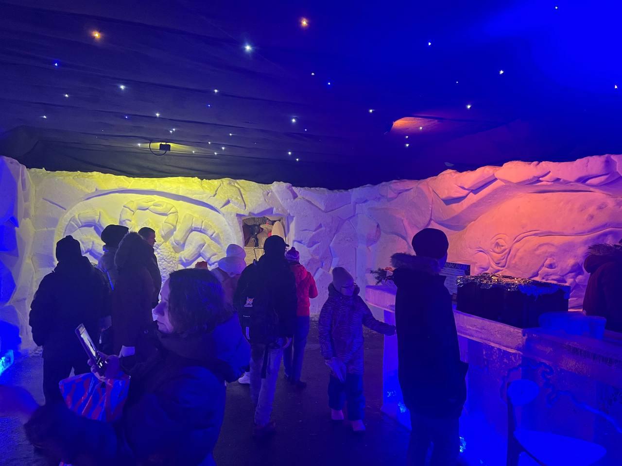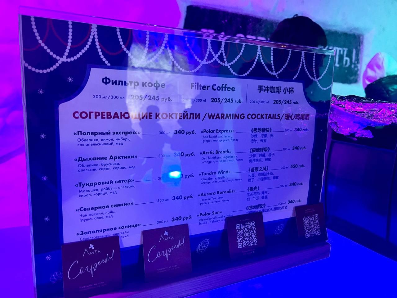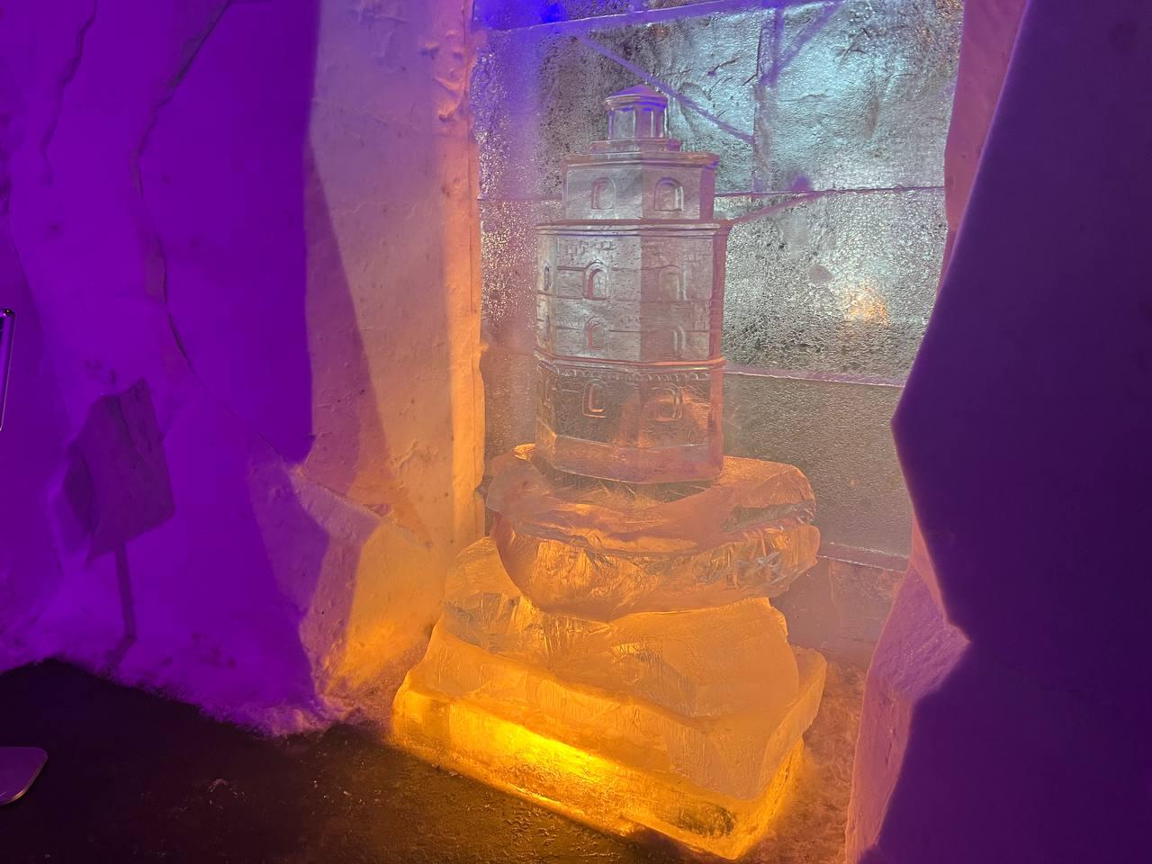 Посетители могут зайти внутрь, чтобы оценить интерьер, полностью выполненный изо льда, и приобрести различные напитки. Особый интерес представляют ледяные картины, которые украшают стены заведения.