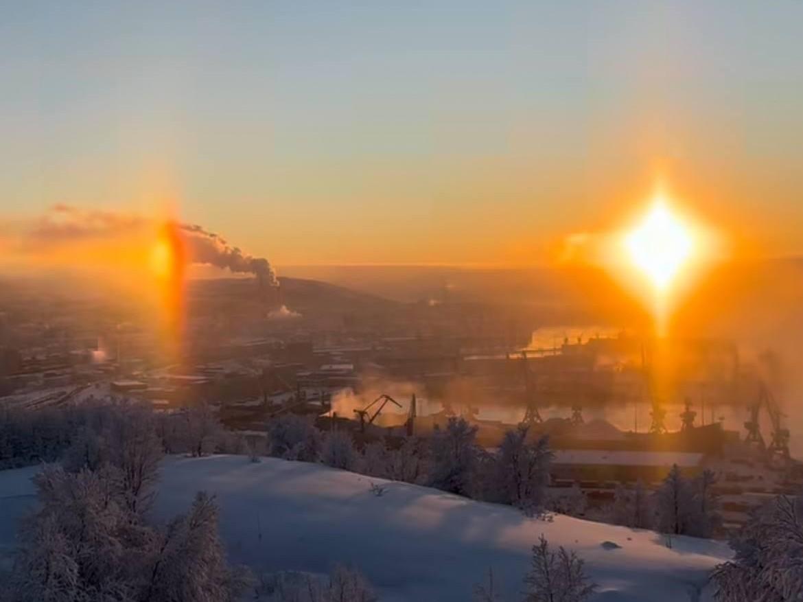 Над Кольским заливом в Мурманске наблюдалось редкое оптическое явление — солнечное гало.