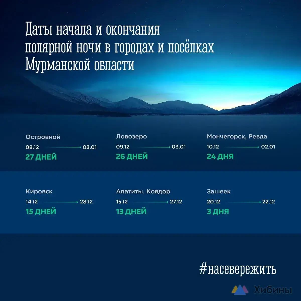 Первыми солнце появится в Апатитах и Ковдоре уже в субботу, 27 декабря. Кировск присоединится к ним днем позже — 28 декабря.