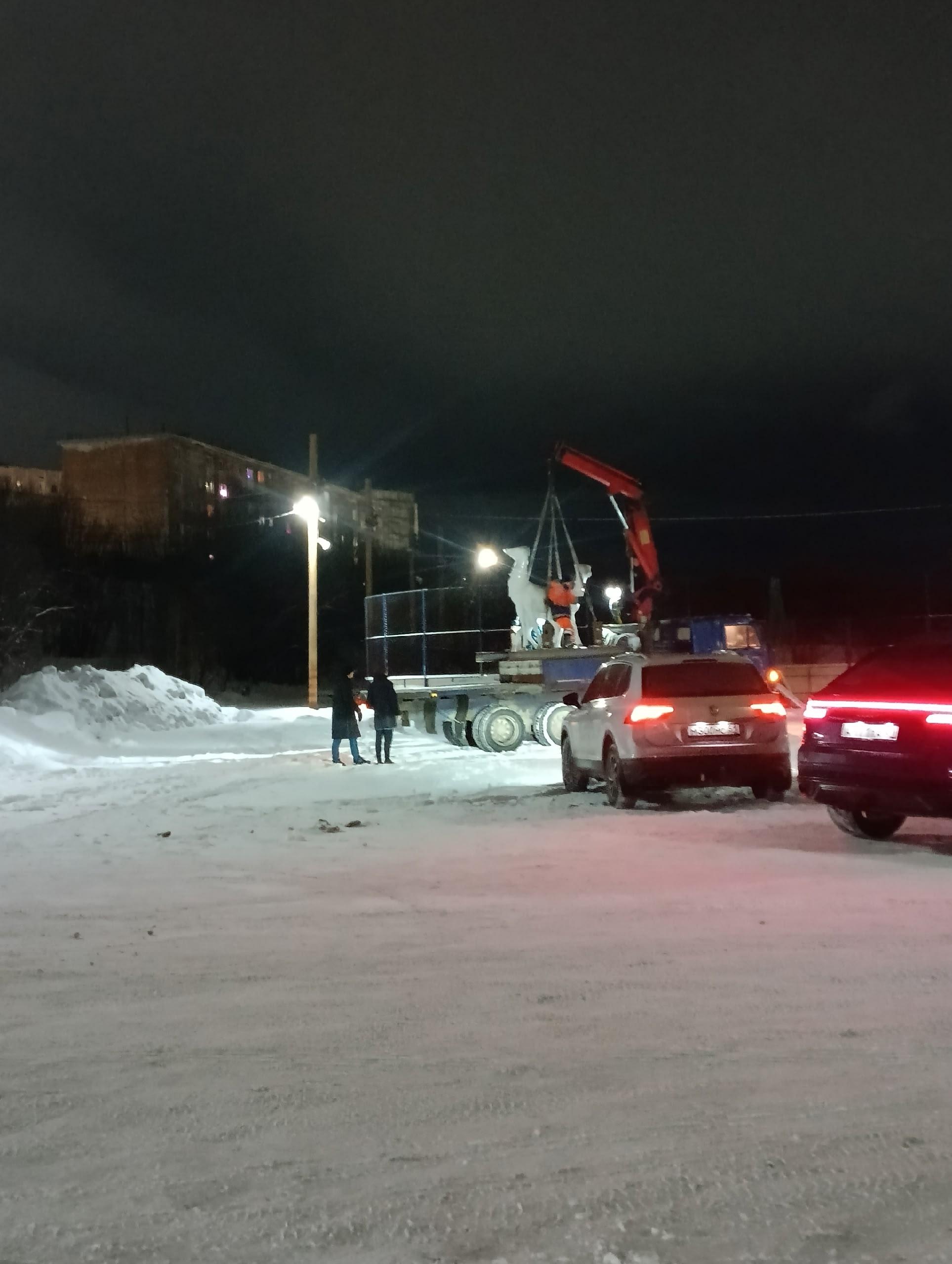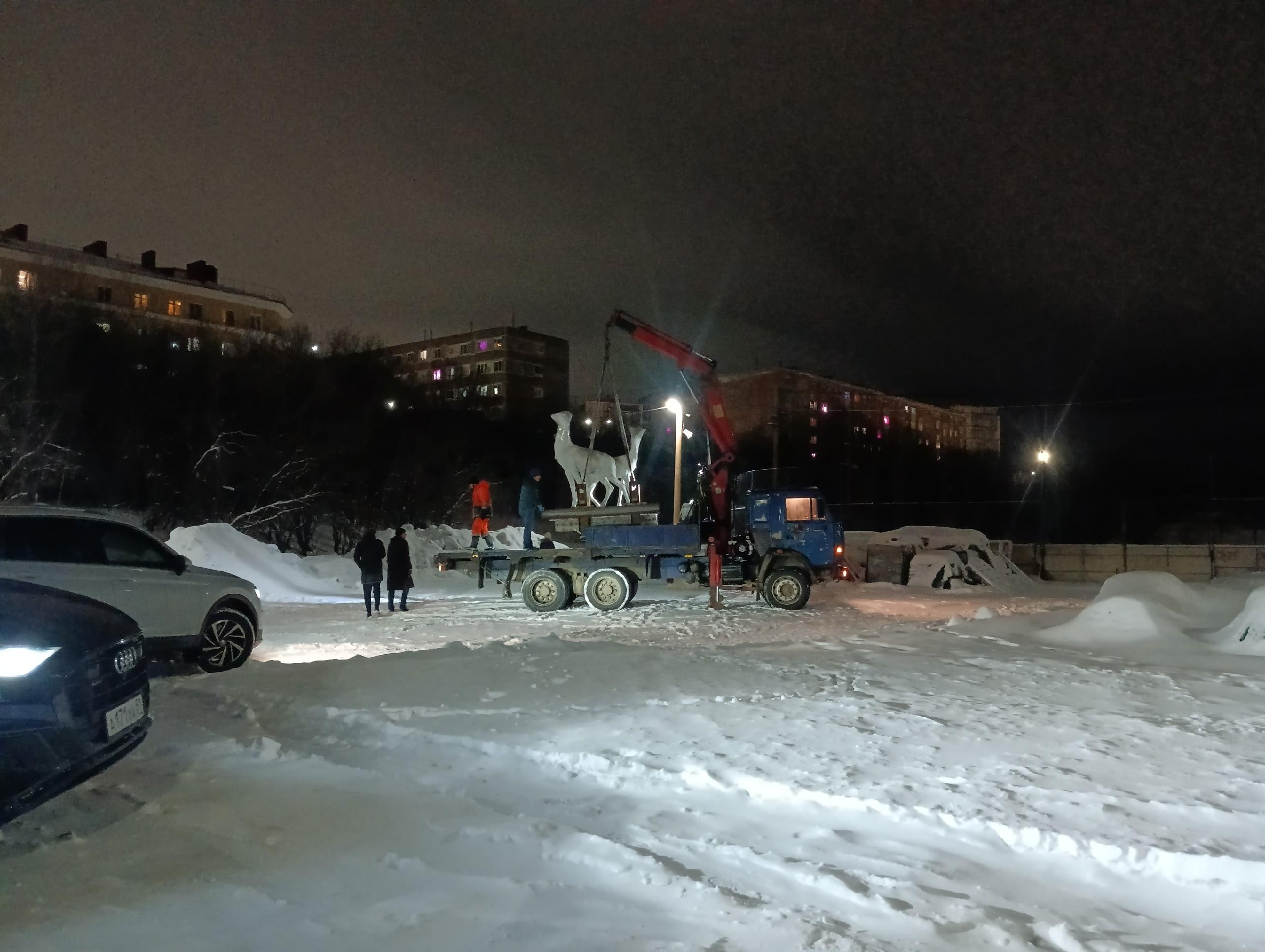 Скульптуру «Северные олени» перевезли в Мурманске для реставрации