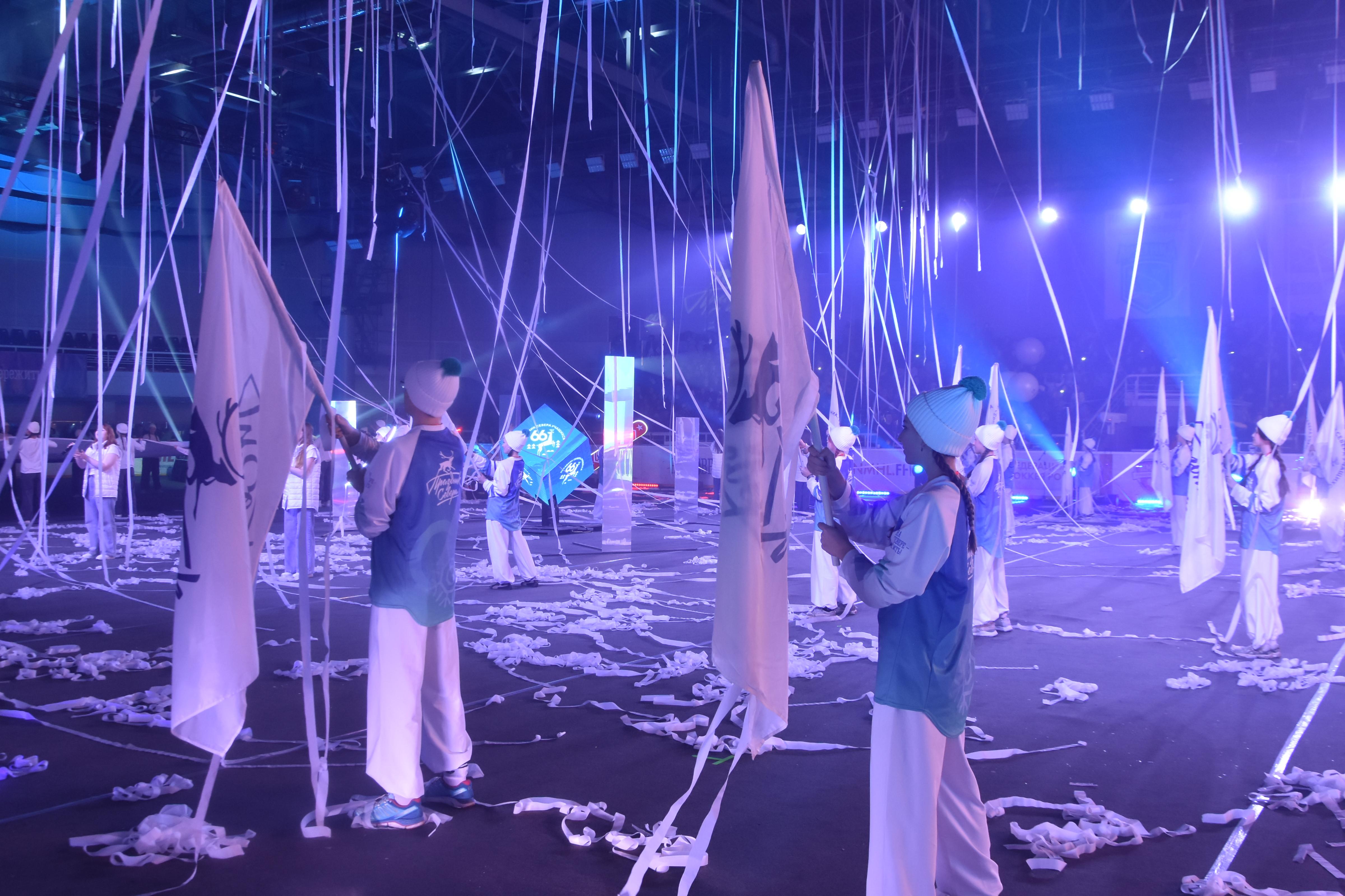Торжественная церемония старта Полярной Олимпиады состоялась в Ледовом дворце. Мероприятие собрало множество участников и зрителей.