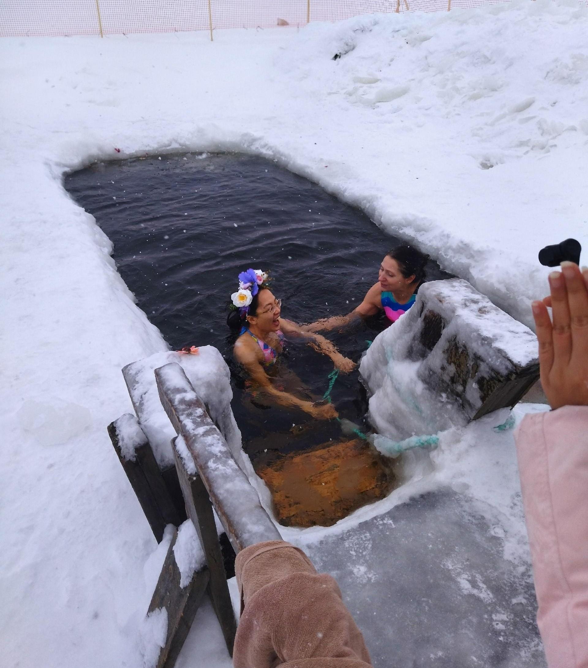 Мурманский любитель зимнего плавания Александр Рожков поделился деталями: «У туристок остались только позитивные впечатления! Одна из них купалась в сопровождении наставника. Она просто окунулась и вышла, но всё равно молодец! Девушка с юга Китая, у них там тепло».