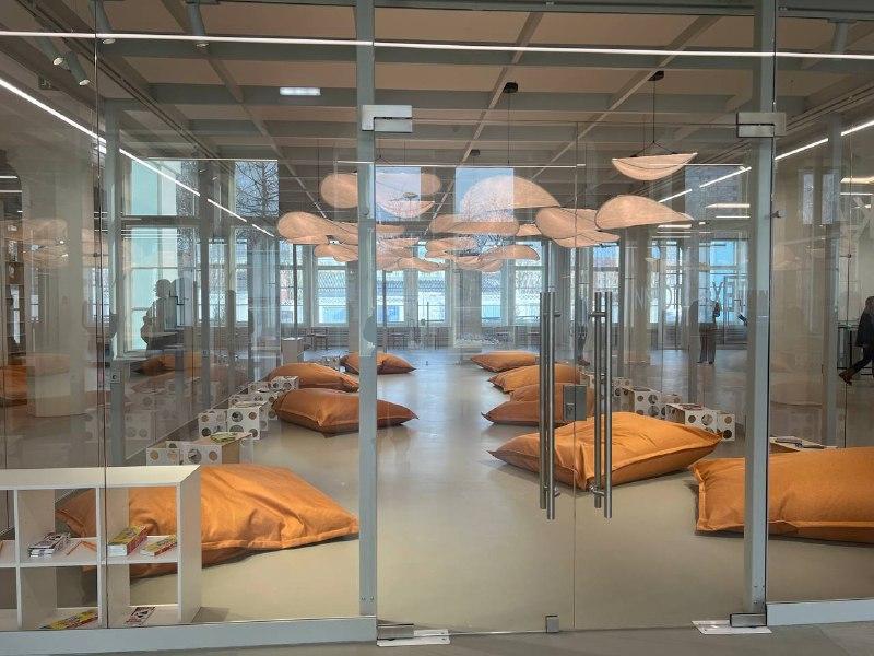 Здание бывшего кинотеатра полностью преобразилось после реконструкции, его интерьеры обновили, а ранее публиковались фотографии внутренних помещений. У входа установили необычный арт-объект, а на первом этаже открылась выставка.