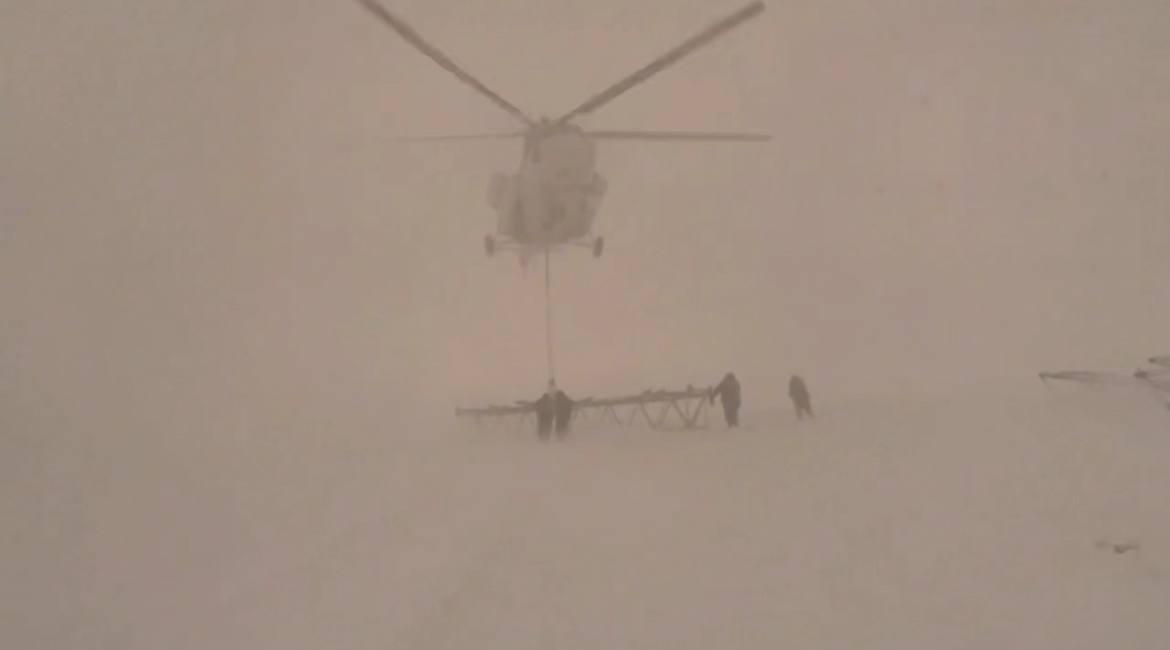 Губернатор Андрей Чибис сообщил: «Продолжаются работы по установке основных опор, 4 уже доставлены вертолетом и вездеходом. Еще одну привезут завтра».