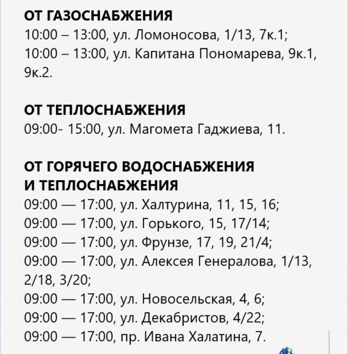 В случае незапланированного прекращения подачи коммунальных услуг жители могут обратиться по телефону 0051.