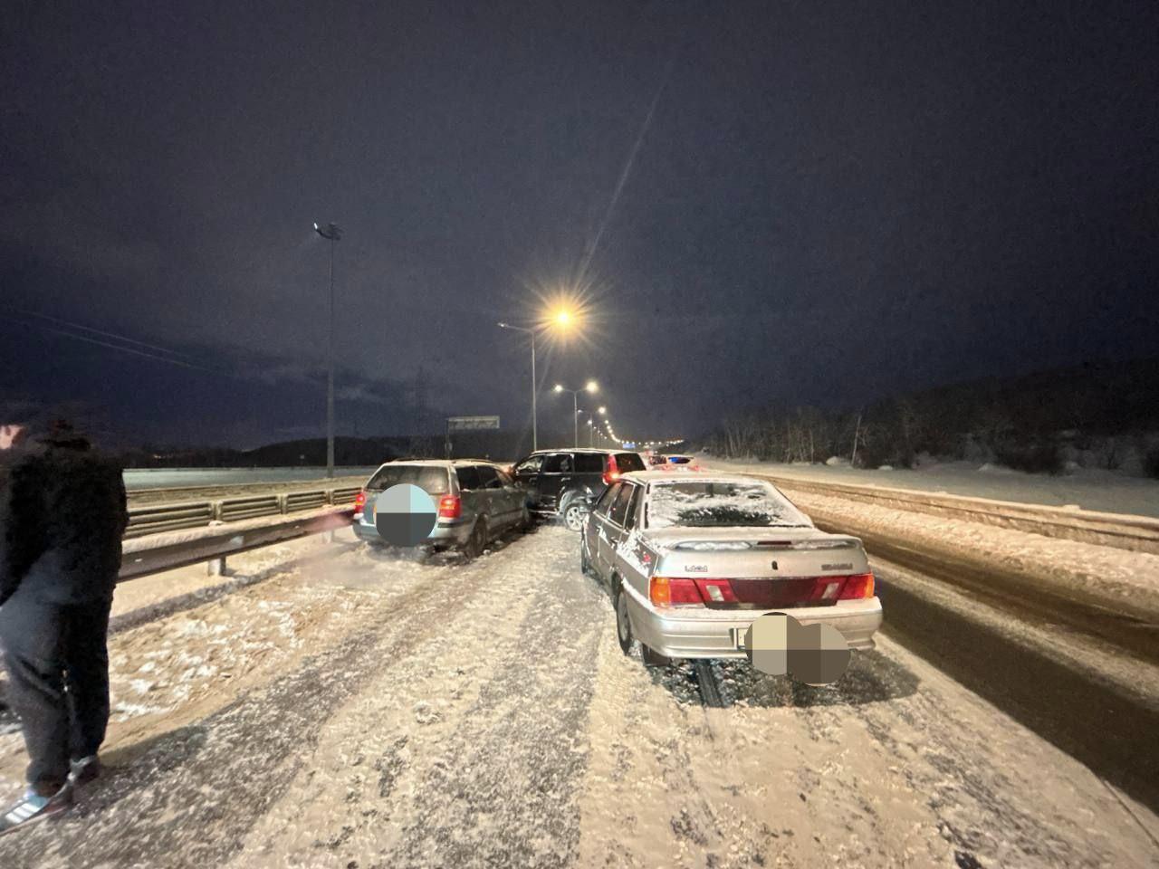 Сегодня утром, около 9 часов, на съезде с федеральной трассы «Кола» в районе улицы Шабалина в Мурманске произошла серия дорожно-транспортных происшествий. Участниками цепочки аварий стали десять машин.