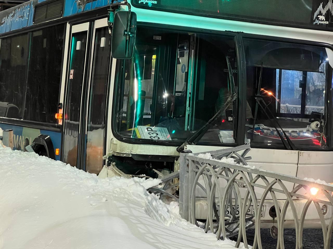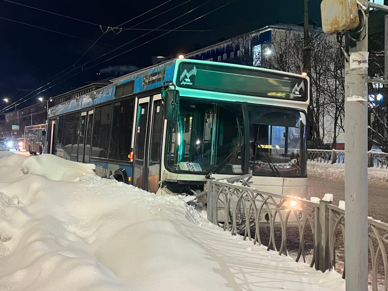 Автобус в Мурманске съехал с дороги и снес забор