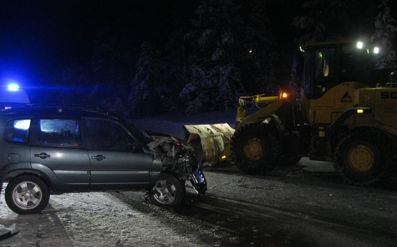 Под Кандалакшей Chevrolet Niva столкнулась с трактором-погрузчиком. Водитель легковушки госпитализирован.