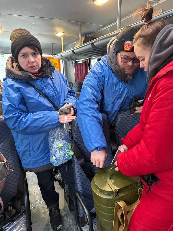 В пункт выехала бригада скорой помощи; медики проводят измерение давления и осмотр людей. К работе активно подключились волонтеры.