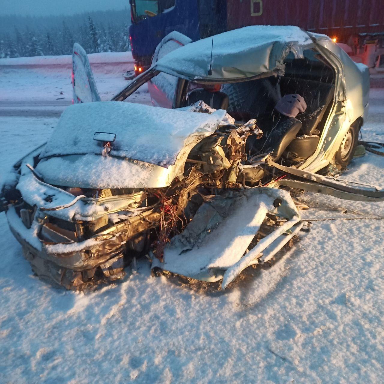 Столкновение случилось на 1364-м километре федеральной трассы Р-21 «Кола». По предварительной информации, тягач марки Scania совершил лобовой удар по автомобилю Renault Logan.