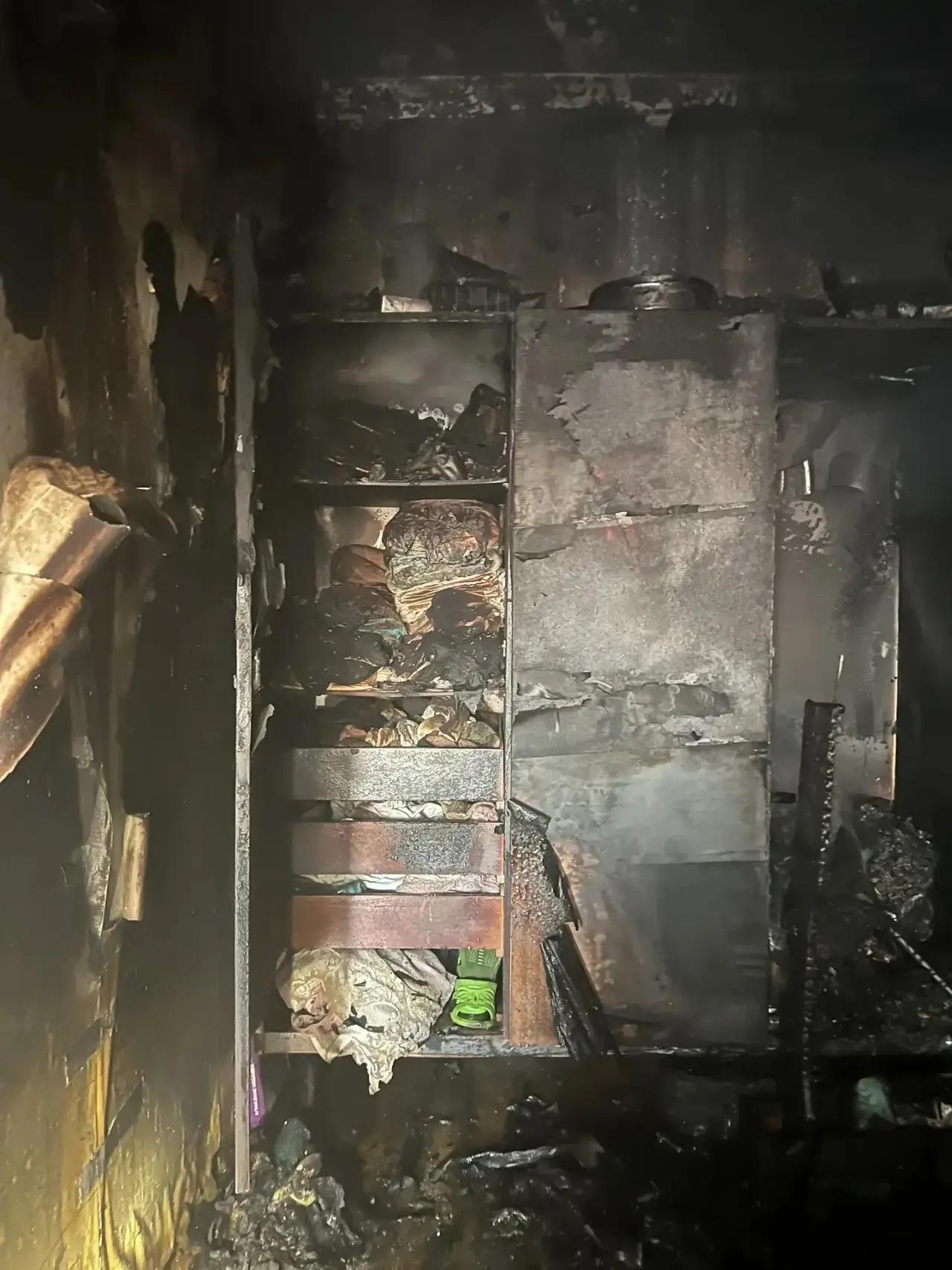 Прибывшие пожарные ликвидировали возгорание к 20:35. Огонь уничтожил кровать, повредил шкаф, комод, кресло и другие вещи. Вся квартира заполнена копотью.
