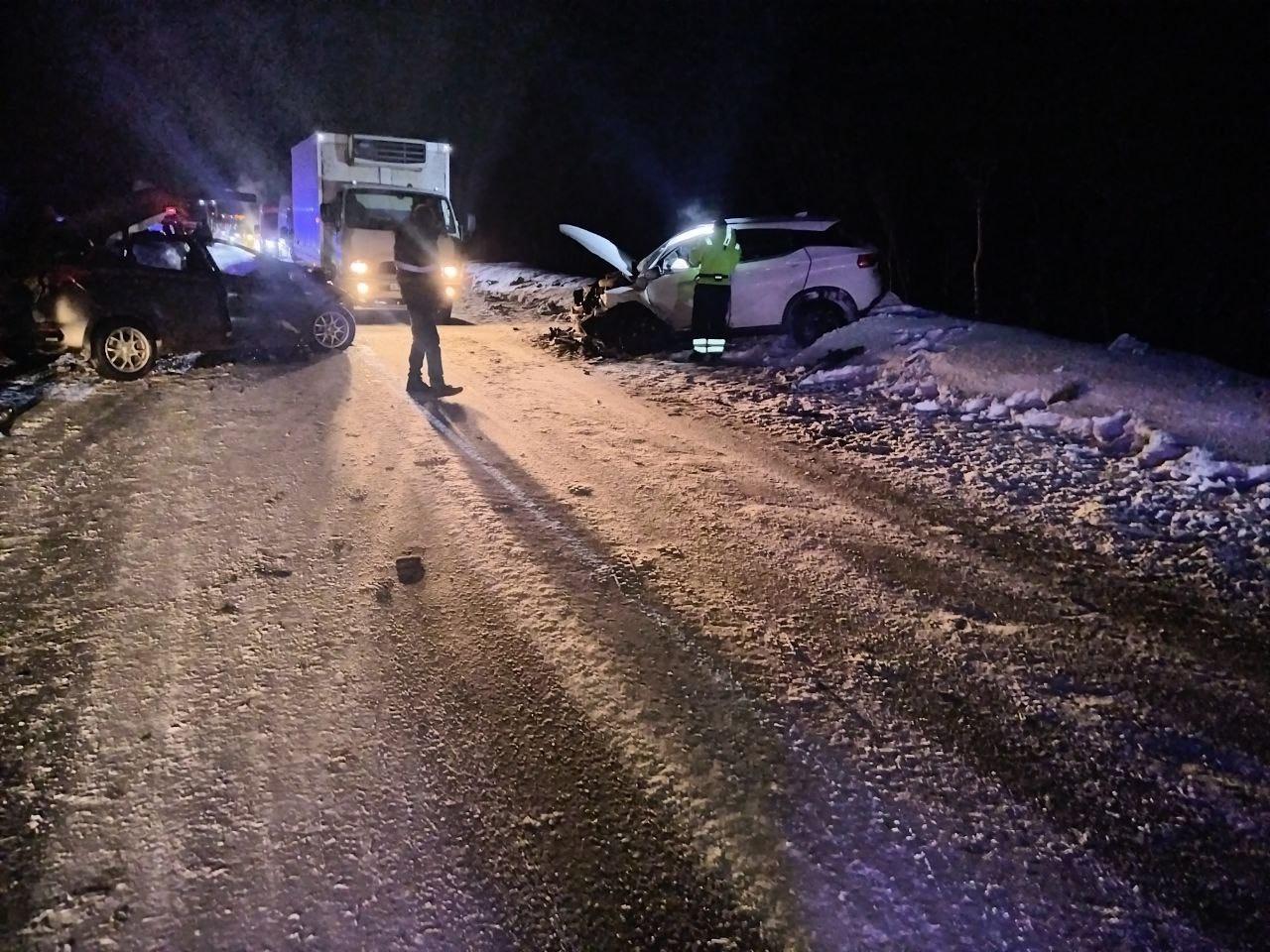 Через несколько часов на том же участке дороги произошло ещё одно столкновение из-за выезда на встречную полосу. Участвовавшие в аварии «Форд-Мондео» и «Субару-Форестер» получили значительные повреждения. Водитель «Форда» и одна пассажирка были доставлены в реанимацию, а другому пассажиру и ребёнку 2018 года рождения медики рекомендовали лечение.