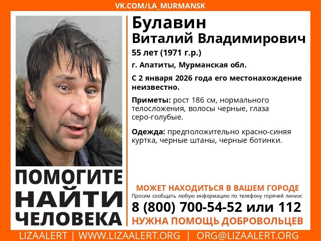 В Апатитах с 2 января разыскивается 55-летний Виталий Владимирович Булавин. На данный момент его местонахождение не установлено.
