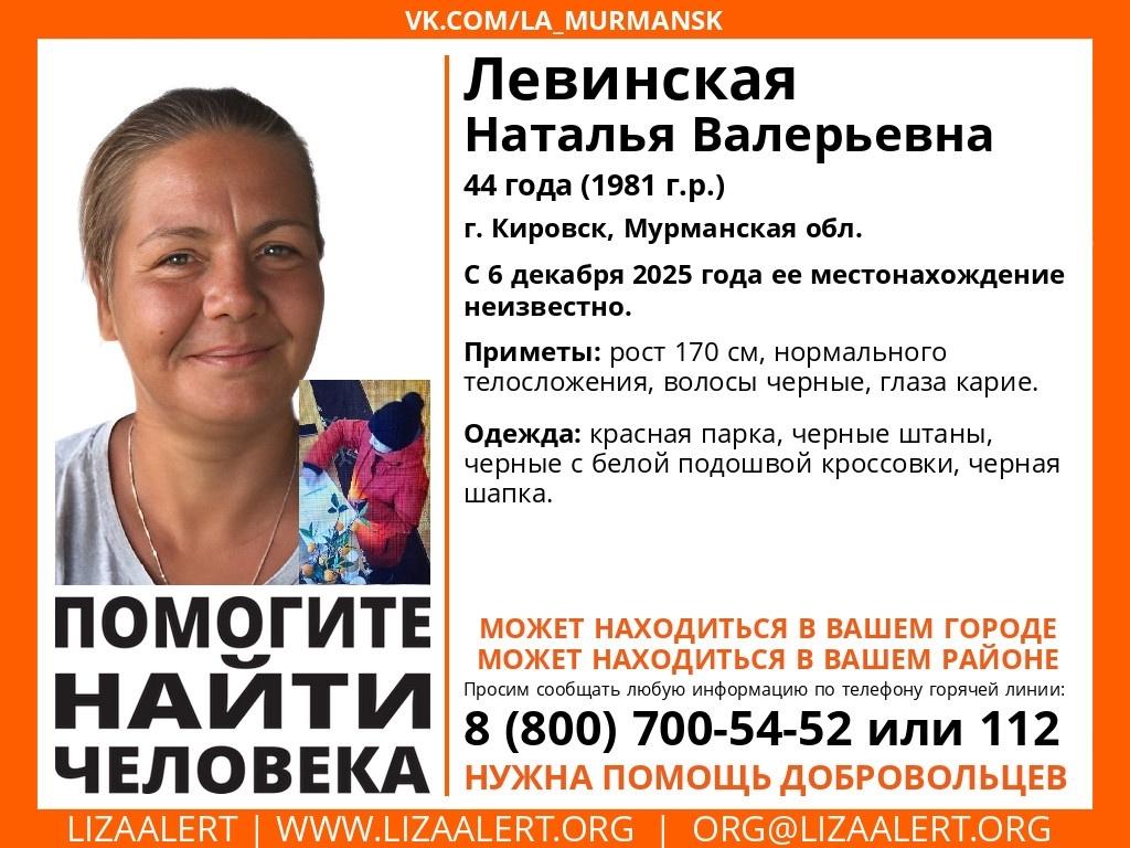 В Кировске пропала 44-летняя Наталья Левинская. Ее местонахождение неизвестно с 6 декабря.
