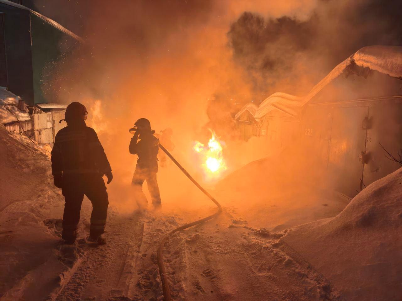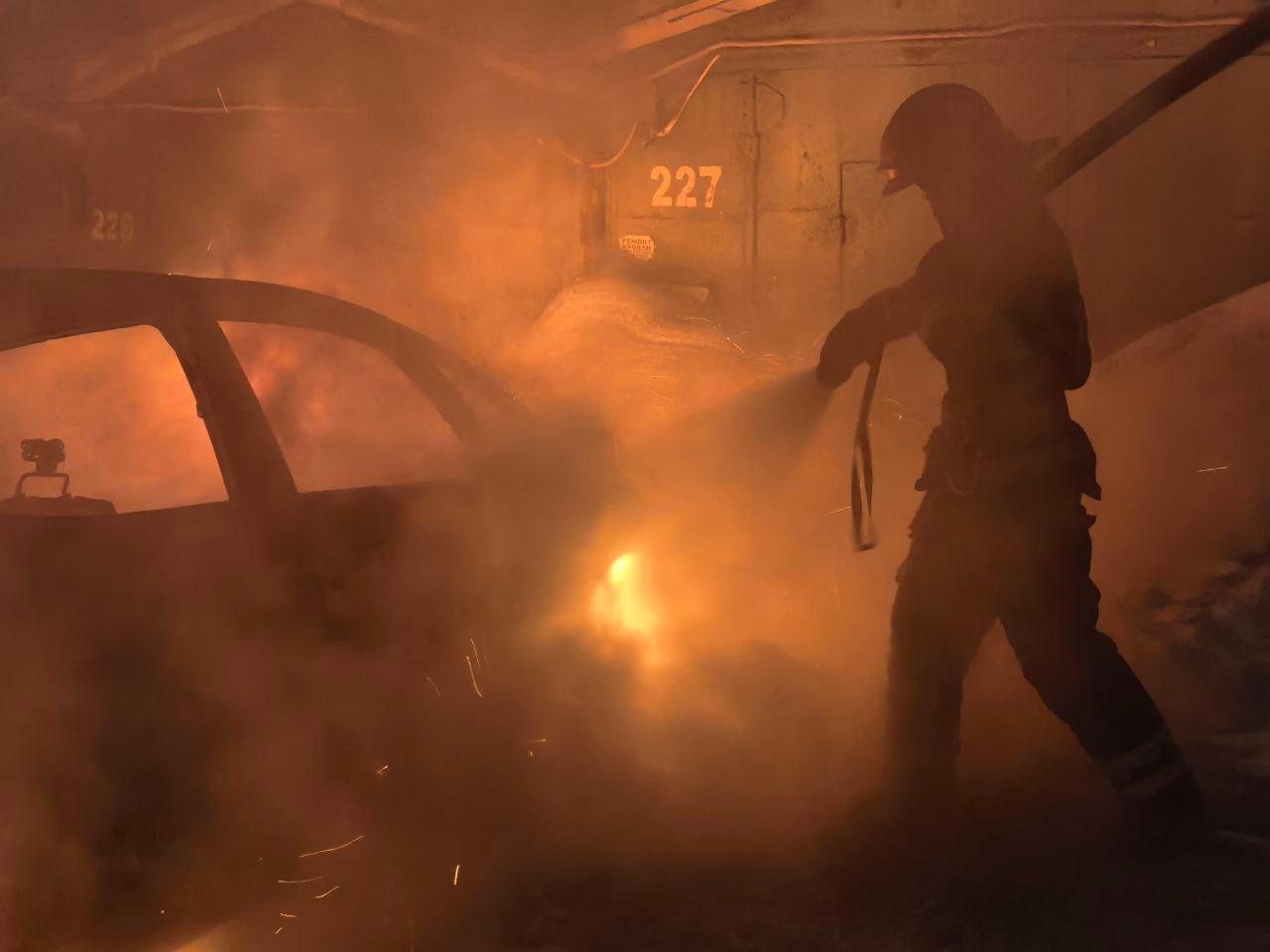 Сообщение о возгорании на территории автогородка № 128 по адресу Героев-североморцев, 118 поступило в спасательные службы в 22:55. Уже к 23:17 с огнём справились 11 пожарных.