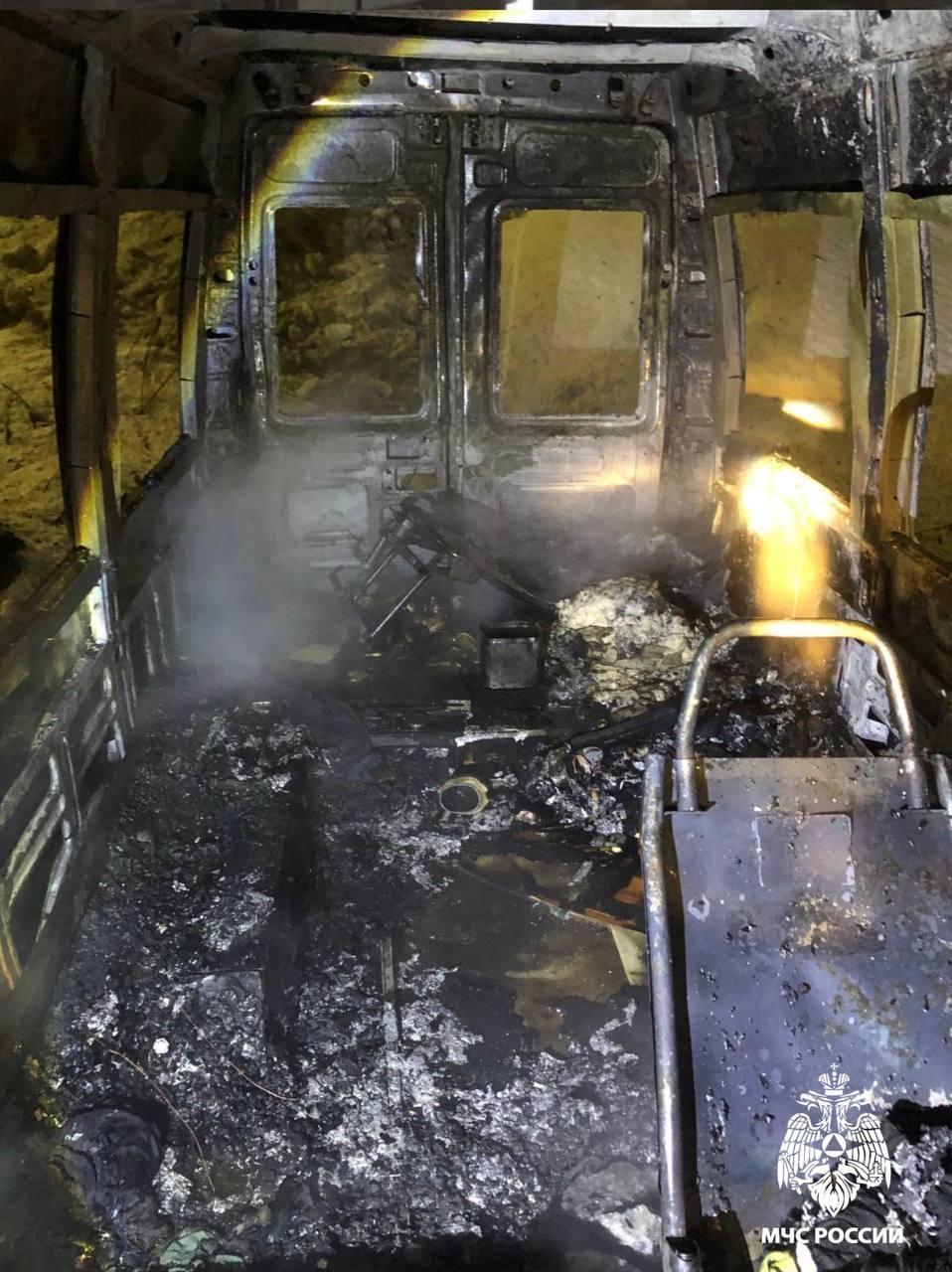 Вечером у дома на улице Маклакова произошло возгорание пассажирского микроавтобуса.