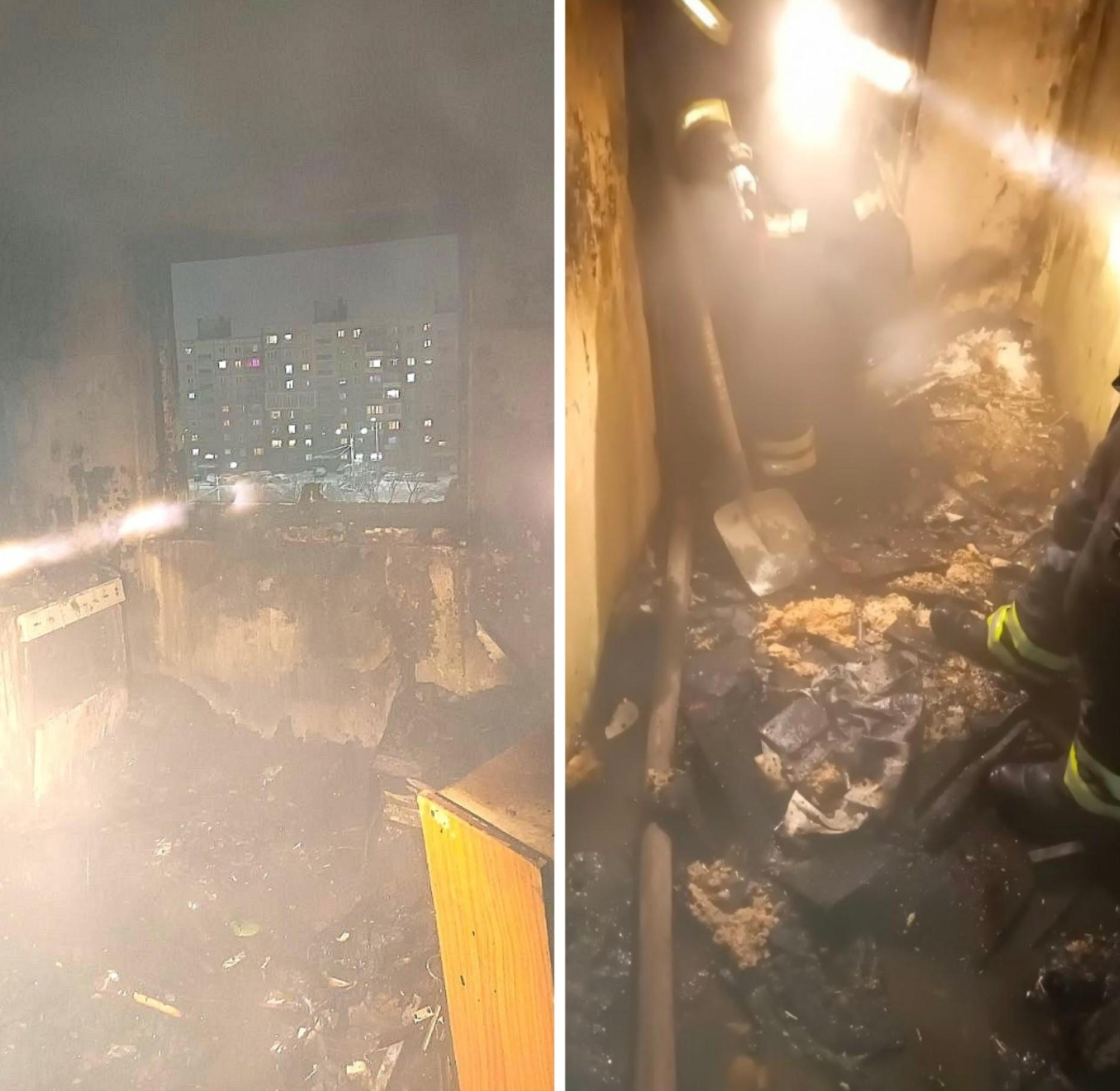 К ликвидации огня привлекли 15 пожарных расчетов, которые справились с пламенем к 16:27. Полностью выгорела однокомнатная квартира на пятом этаже, где была обустроена аудиостудия со звукоизоляционной отделкой. Также огнем уничтожен тамбур и обуглена входная дверь соседнего жилого помещения.