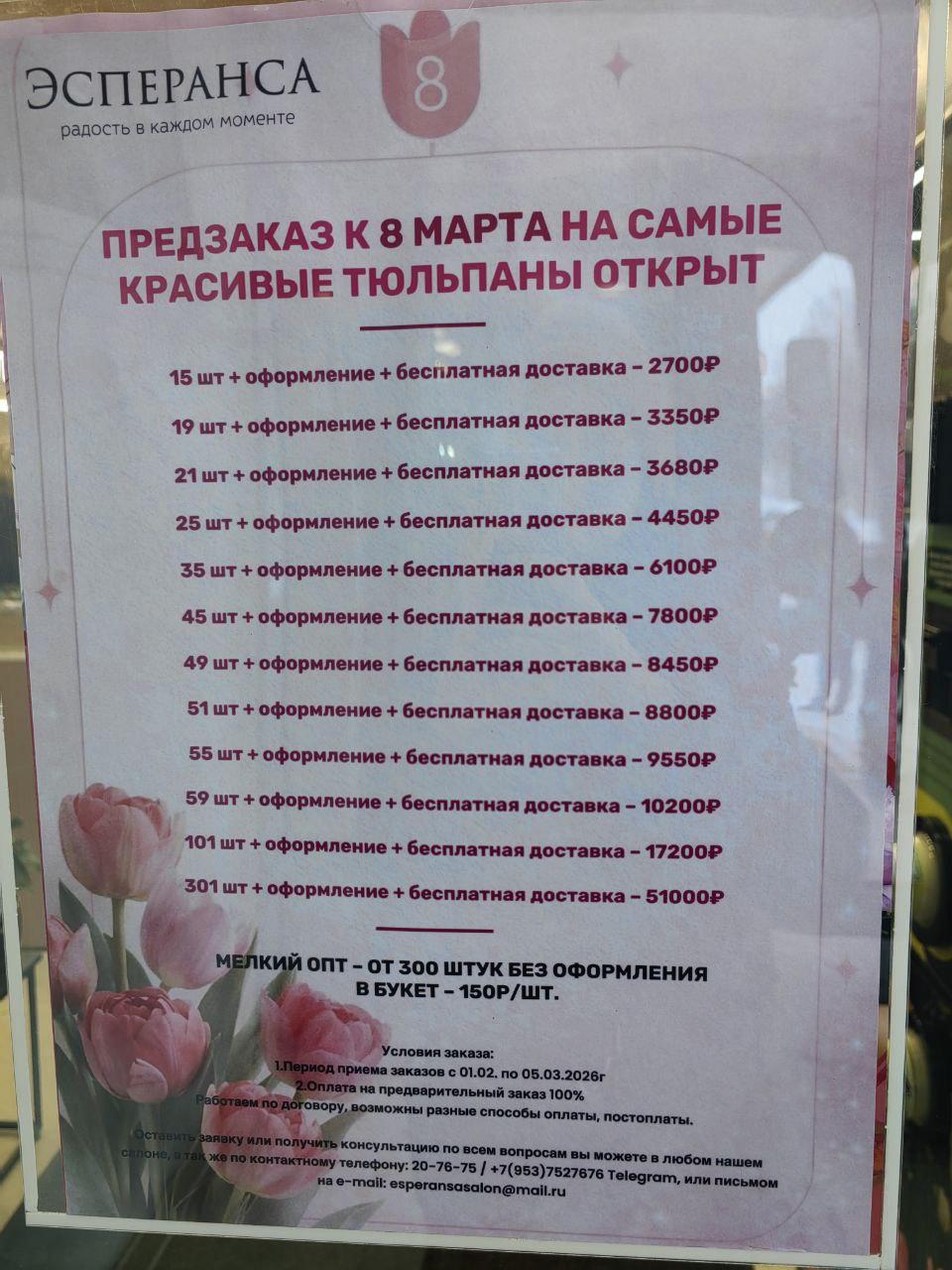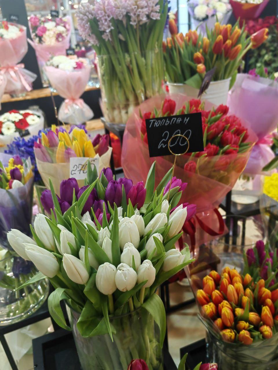 Традиция дарить цветы женщинам 8 Марта в Мурманской области поддерживается широким предложением в магазинах города. Ассортимент включает как простые тюльпаны в упаковке, так и роскошные букеты, при этом цены значительно варьируются.