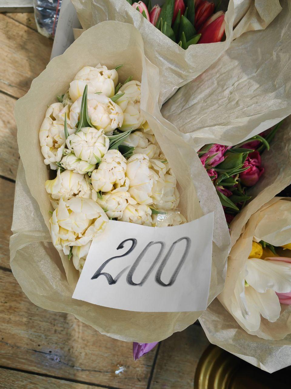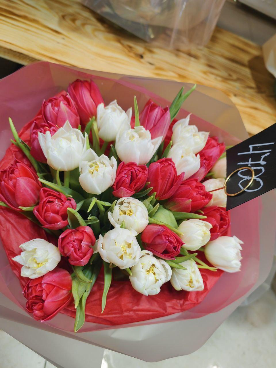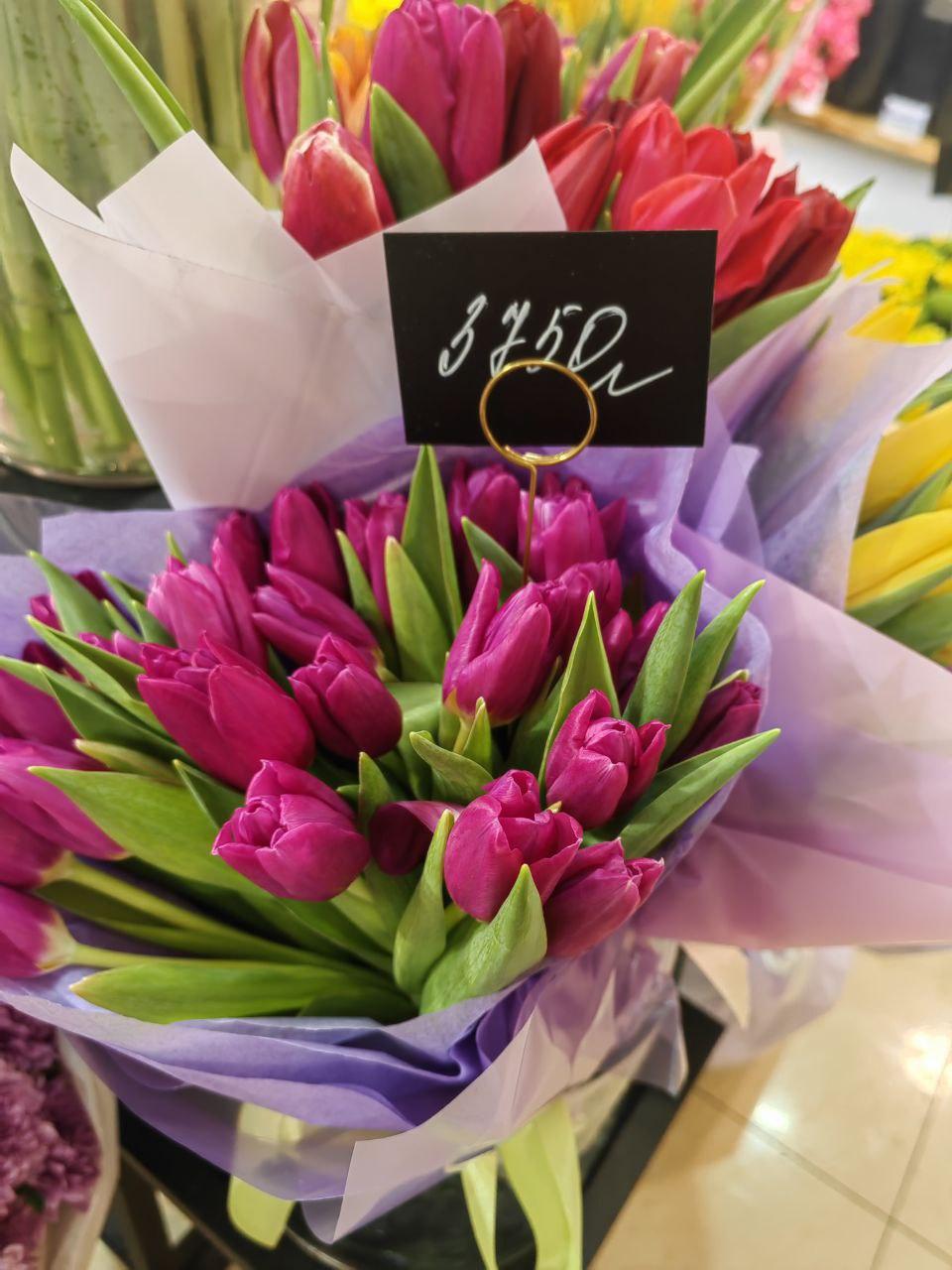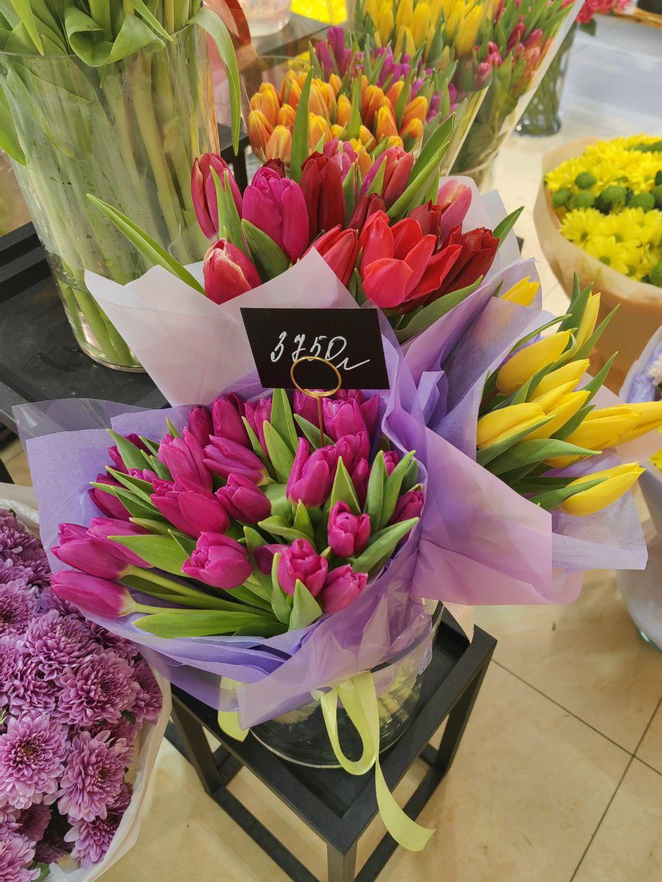 В продаже есть отдельные тюльпаны и готовые упакованные букеты.
