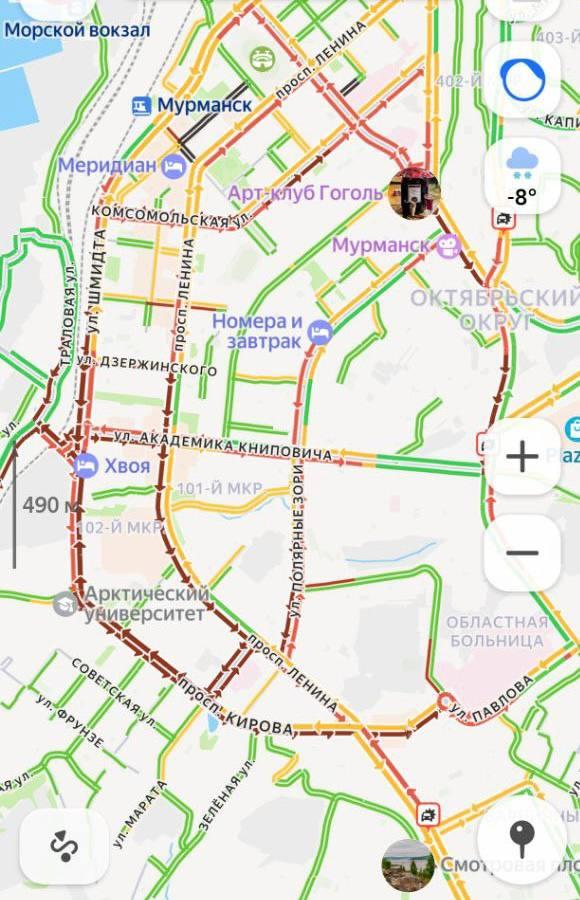 Серьёзные транспортные затруднения возникли в центре Мурманска вечером 6 марта. Согласно данным картографического сервиса, ситуация на дорогах в этой части города оценивалась как сложная.