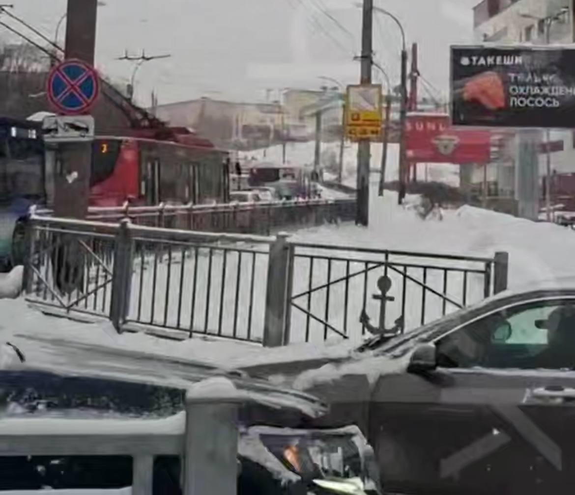 Вечером 6 марта движение в центре Мурманска было серьёзно затруднено, на многих улицах образовались длинные заторы.
