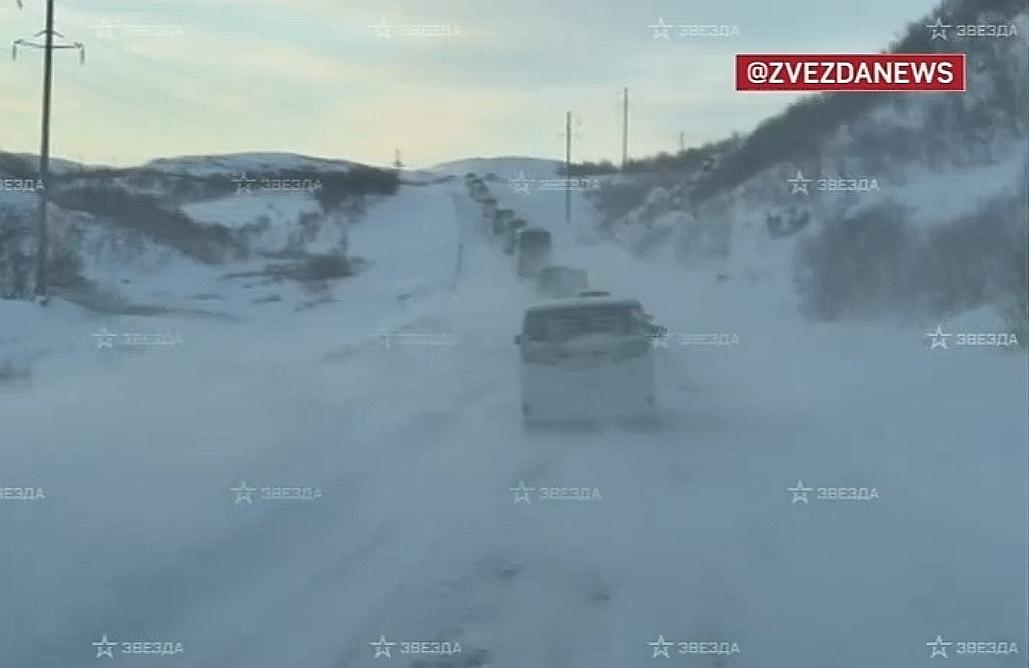 Транспорт начинает постепенно выезжать из Териберки после улучшения погодных условий