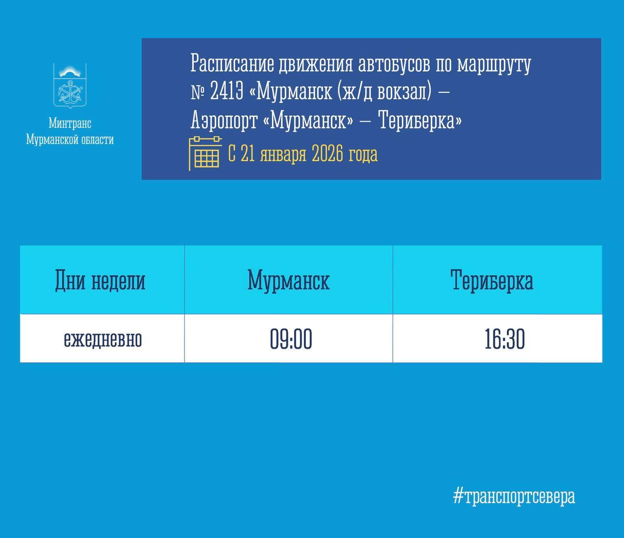 С 21 января 2026 года начнет работать прямой рейс №241Э, следующий из Мурманска в Териберку с заездом в аэропорт.