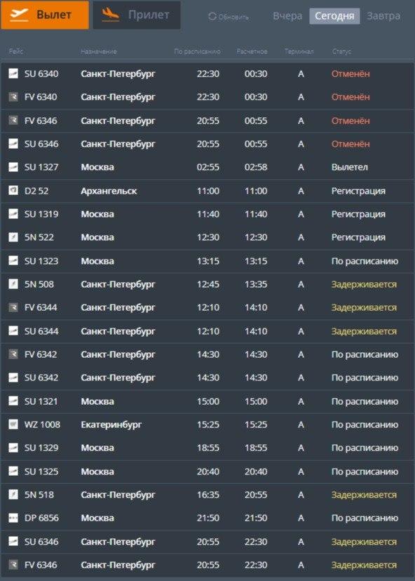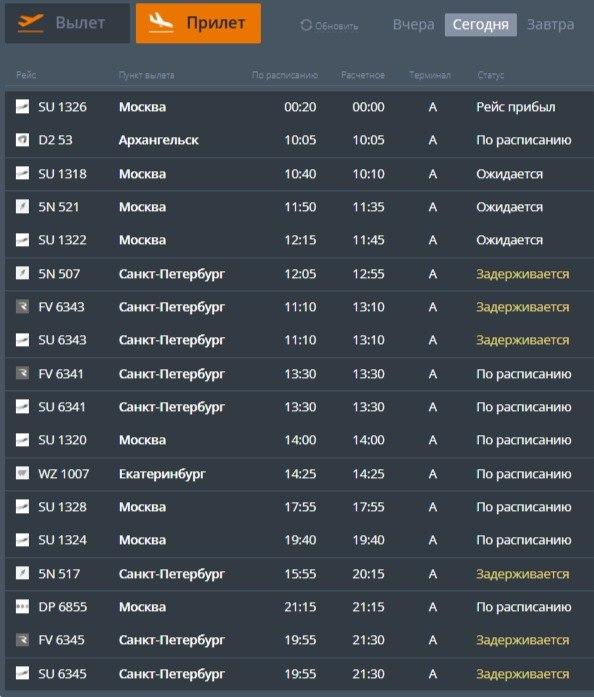 Как минимум четыре вылета из Мурманска в Санкт-Петербург отправятся с существенным опозданием. График рейса в обратном направлении — из Санкт-Петербурга в Мурманск — также сдвинут на несколько часов.